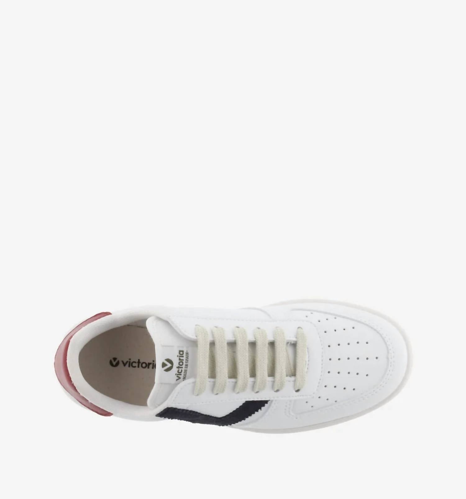 Get your daily steps in with these adorable sneakers. Step up your streetwear game with the Women's Madrid Sneaker by VICTORIA, perfectly designed for every stylish getaway. Crafted in Spain, these white trainers feature a leather-effect and synthetic composition with a trendy Mostaza color, accented by the classic Victoria V logo. The lace-up sneakers are topped with a split leather logo and a black heel detail, while the perforated upper ensures breathability and comfort. Their 3 cm P.V.C. outsole is engineered with vegetable oils, highlighting an eco-conscious design.