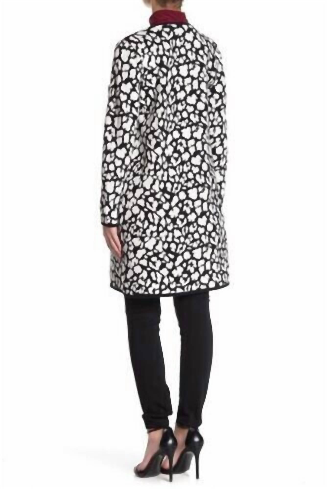 Throw this adorable cardigan over any cami or tank top. Introducing the Vince Camuto Open Front Cheetah Print Cardigan, a chic addition to any wardrobe that effortlessly blends style and comfort. This long-sleeve cardigan is crafted from 100% cotton, ensuring a soft and breathable fit. Its multicolor black and white animal print is unlined and features a draped V-neckline, measuring a garment length of 36.5 inches. With no closures, it's easy to slip on and care for by hand washing cold, adding versatility to your casual or dressy ensembles.