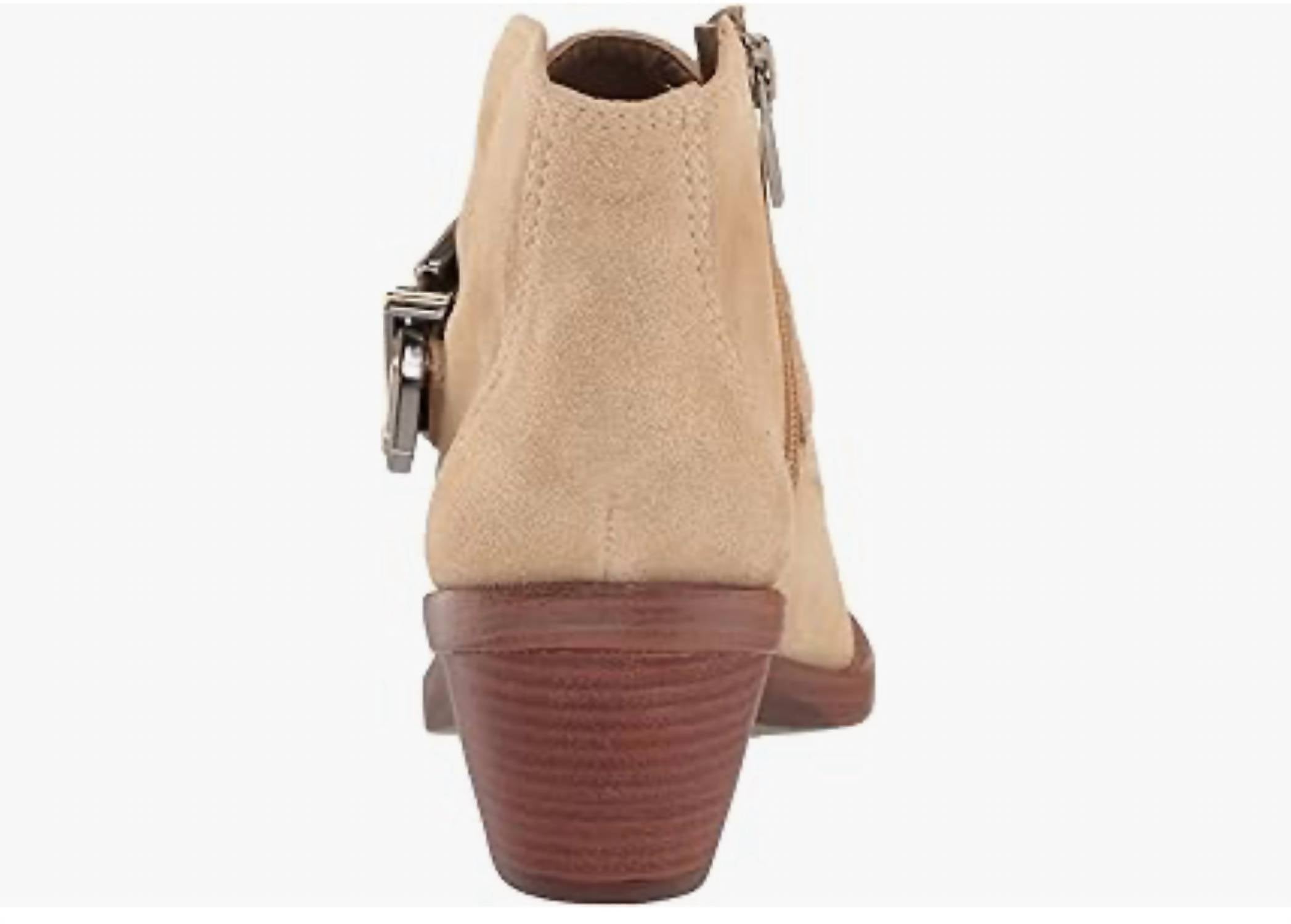 Say hello to the perfect, most versatile boot. The ankle height makes this style easily transition from day to night. Wear them with your favorite skinny jeans and tee for a more laid back look, or pair them with your favorite mini dress and jacket for a night out on the town. Step into the Ashena Ankle Bootie by Vince Camuto and elevate your style with its chic tortilla hue and western-inspired design. These women's ankle boots feature a pointed toe and block heel, perfect for travel and versatile wear. The inside zipper ensures easy wearability, while the belted detailing adds a fashionable touch. Make this pair a staple in your fall wardrobe this season.