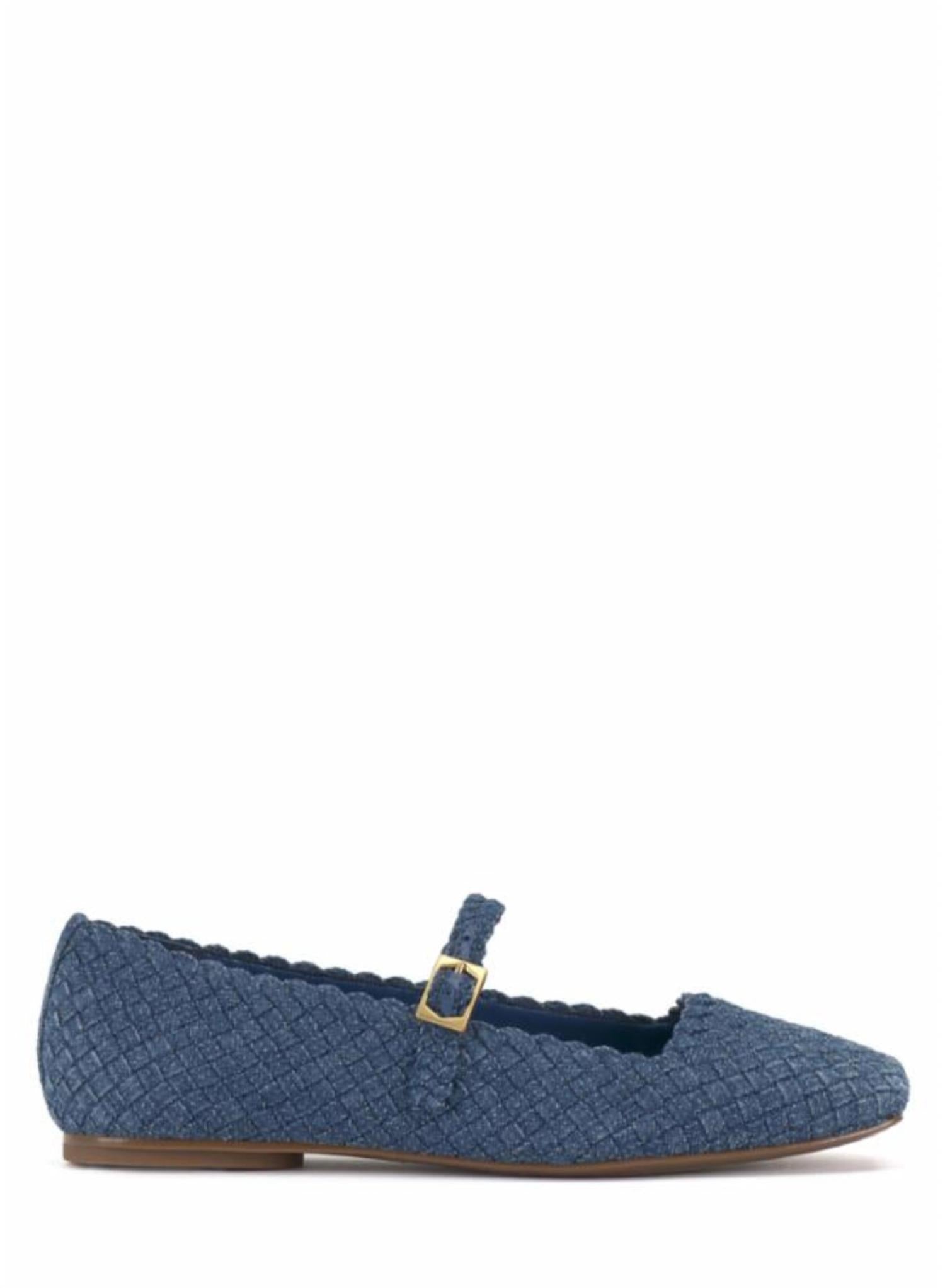 Step into style with VINCE CAMUTO's Women's Ballerina Flats in Element Indigo/Field Denim, ideal for adding a touch of elegance to your wardrobe. These flats feature a woven synthetic upper with intricate details and a classic buckled Mary Jane strap closure, offering a secure fit. Designed with a square toe, padded insole, and a rubber outsole, these flats ensure comfort and durability. Heel Height: Approximately 0.2 inches.