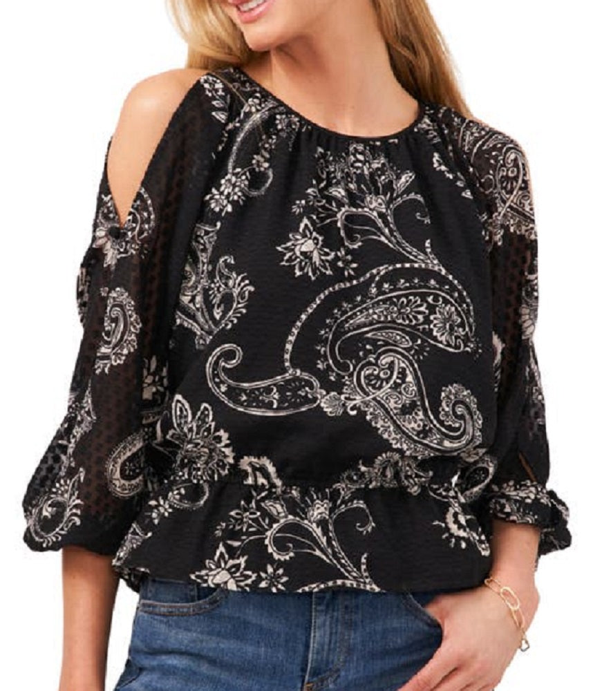 Vince Camuto Women's Blooming Paisley Cold Shoulder Top Black Size Small