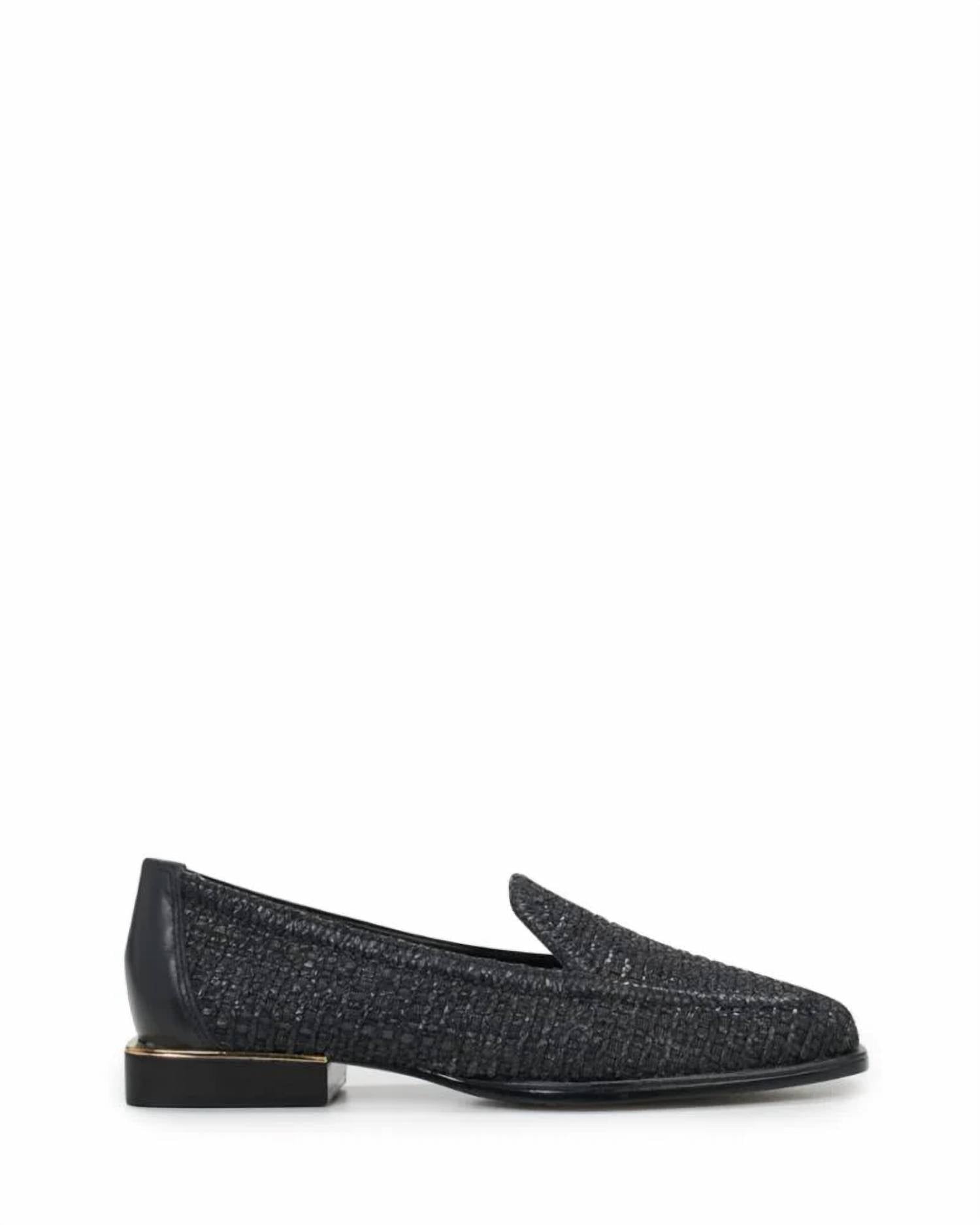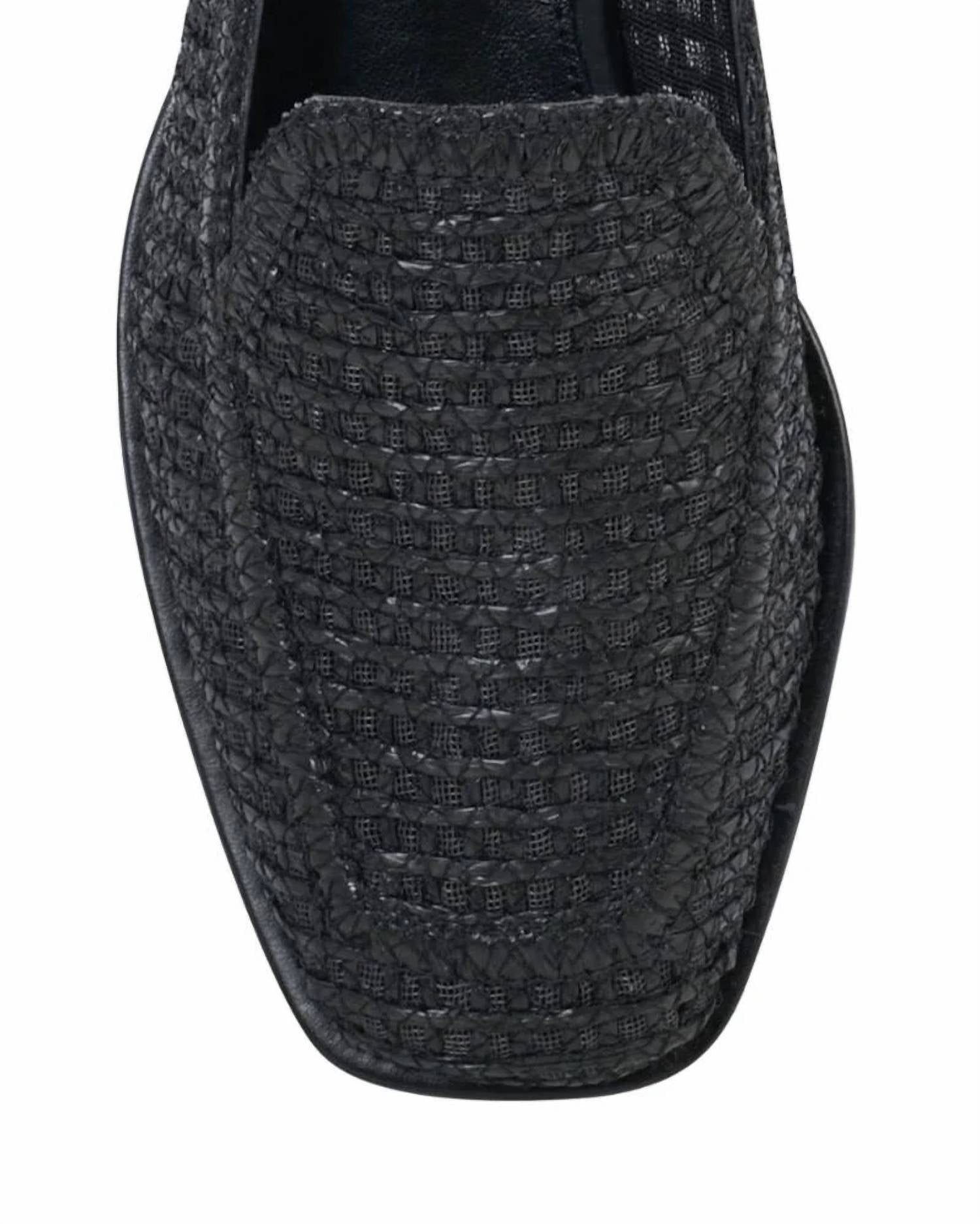 A classic loafer that is both comfortable and polished. Classic loafer with a raffia material. classic silhouette and padded .