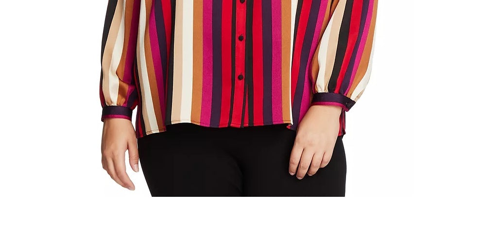 Vince Camuto Women's Mayfair Stripe Ruffle Neck Satin Blouse Red Size 3X