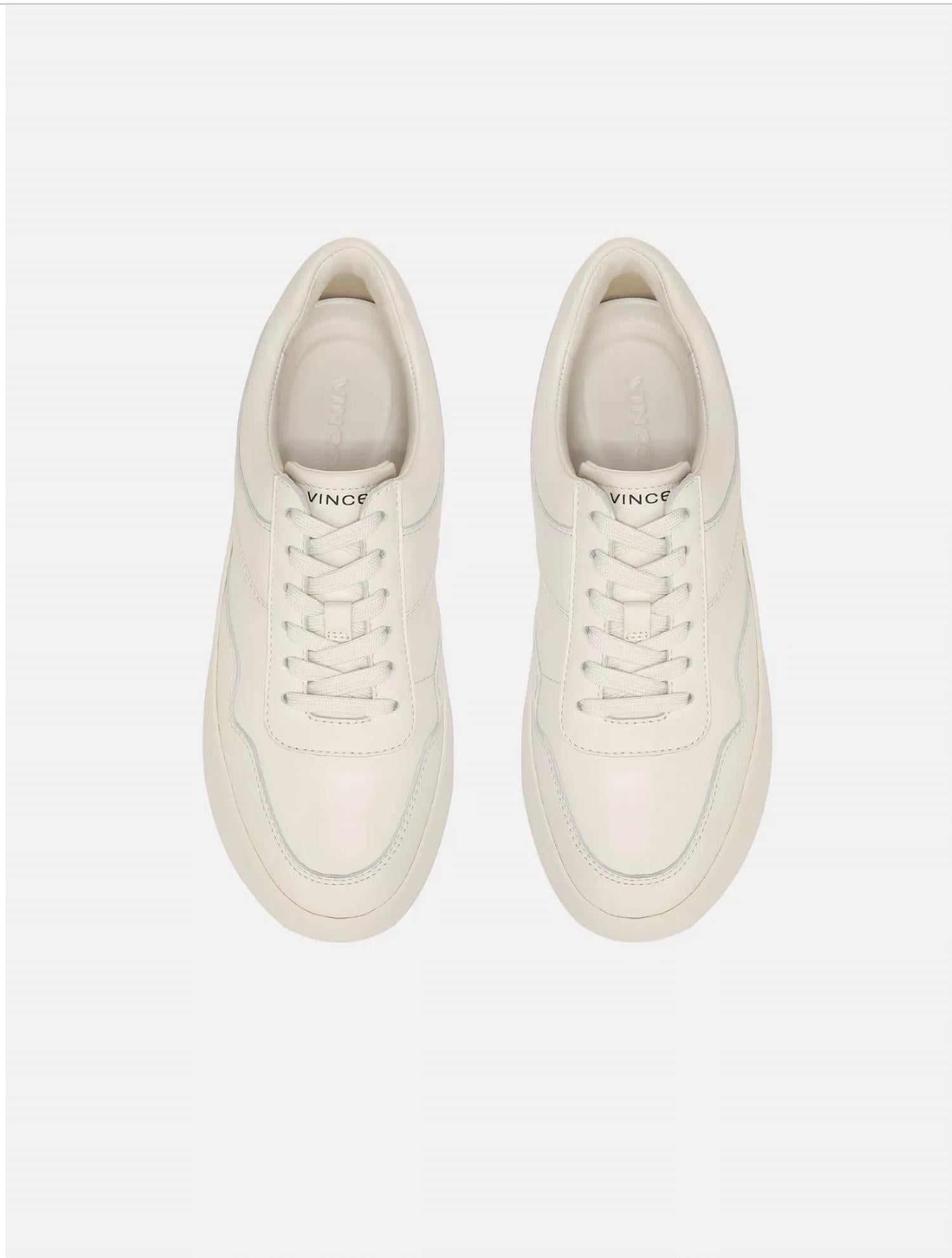 Elevate your casual footwear with the Women's Warren Court Leather Sneaker by Vince, a perfect blend of sporty and chic. Crafted from supple leather in a milk hue, these sneakers feature a platform midsole that measures 1.62 inches, offering both style and a modest lift. With a lace-up closure and round apron toe, it's ideal for achieving a streetwear-inspired look. Embrace summer travels with this versatile medium-width sneaker, designed for comfort and effortless style.
