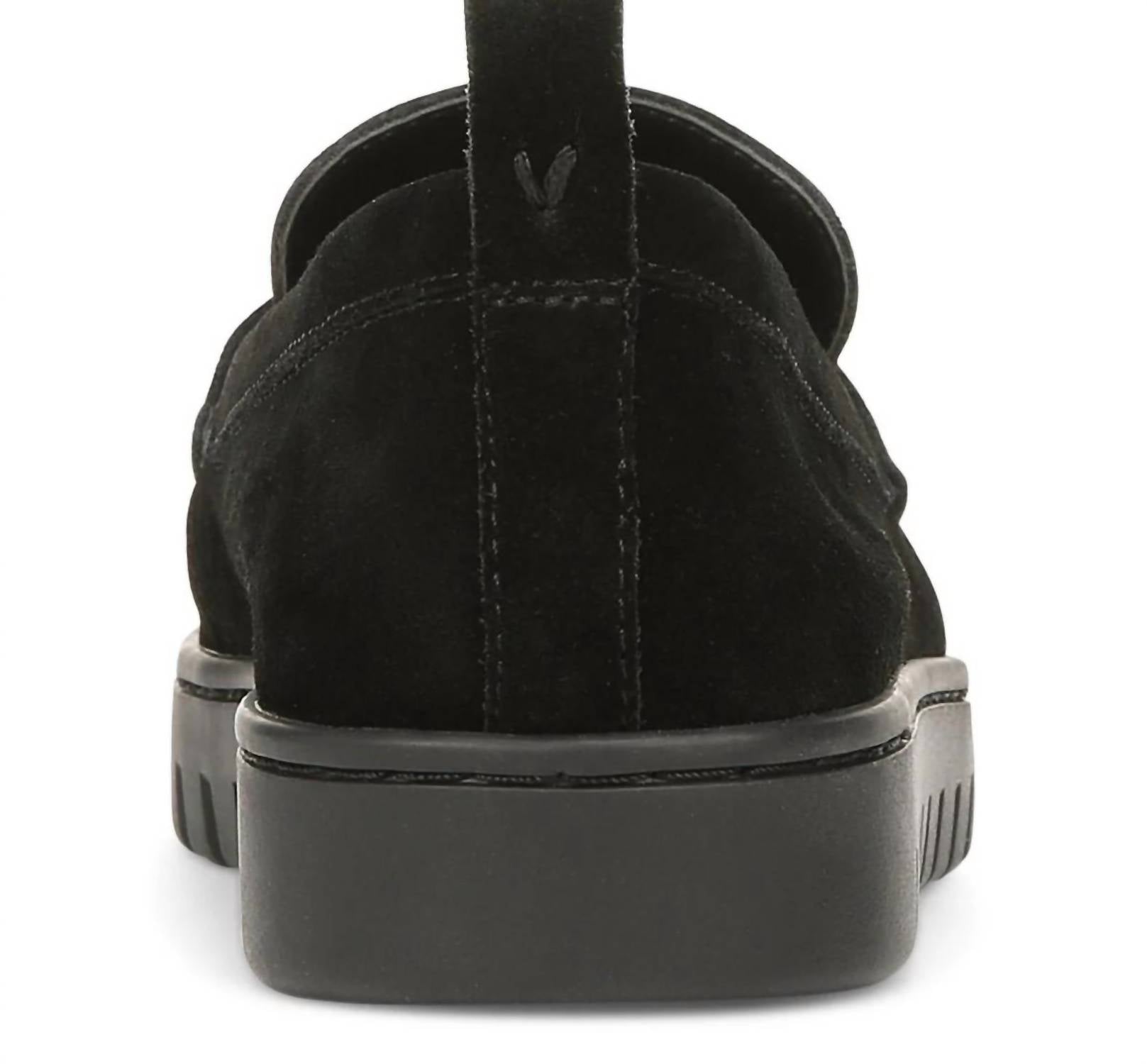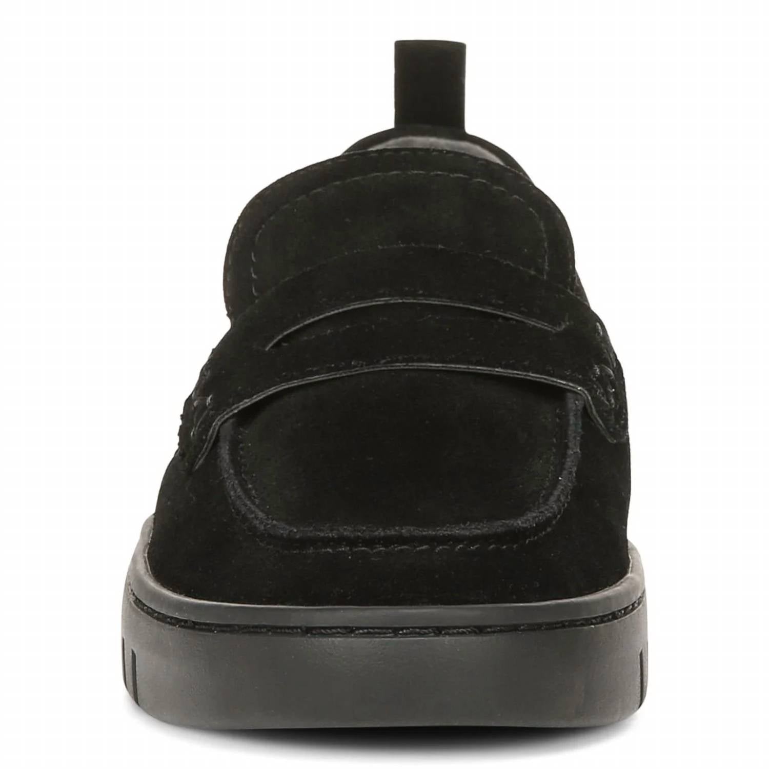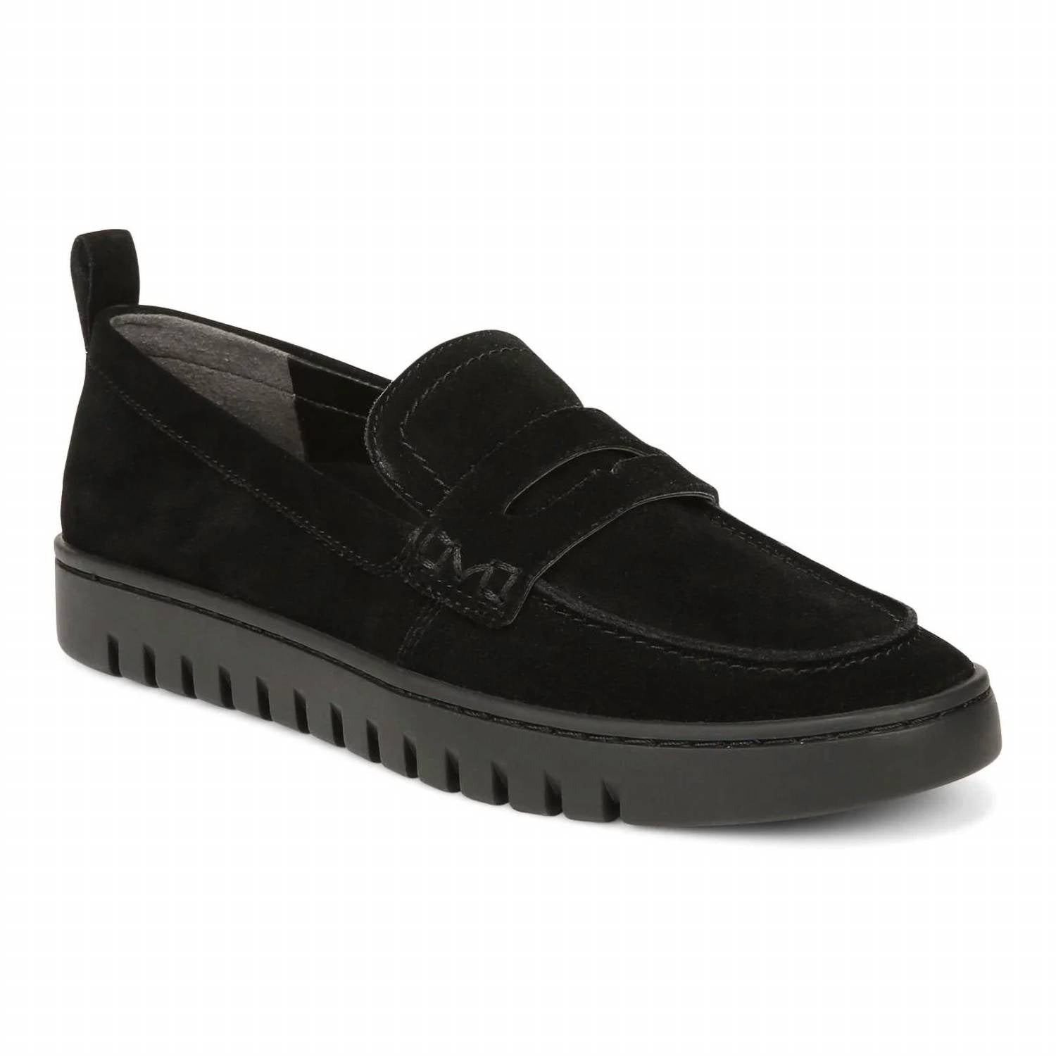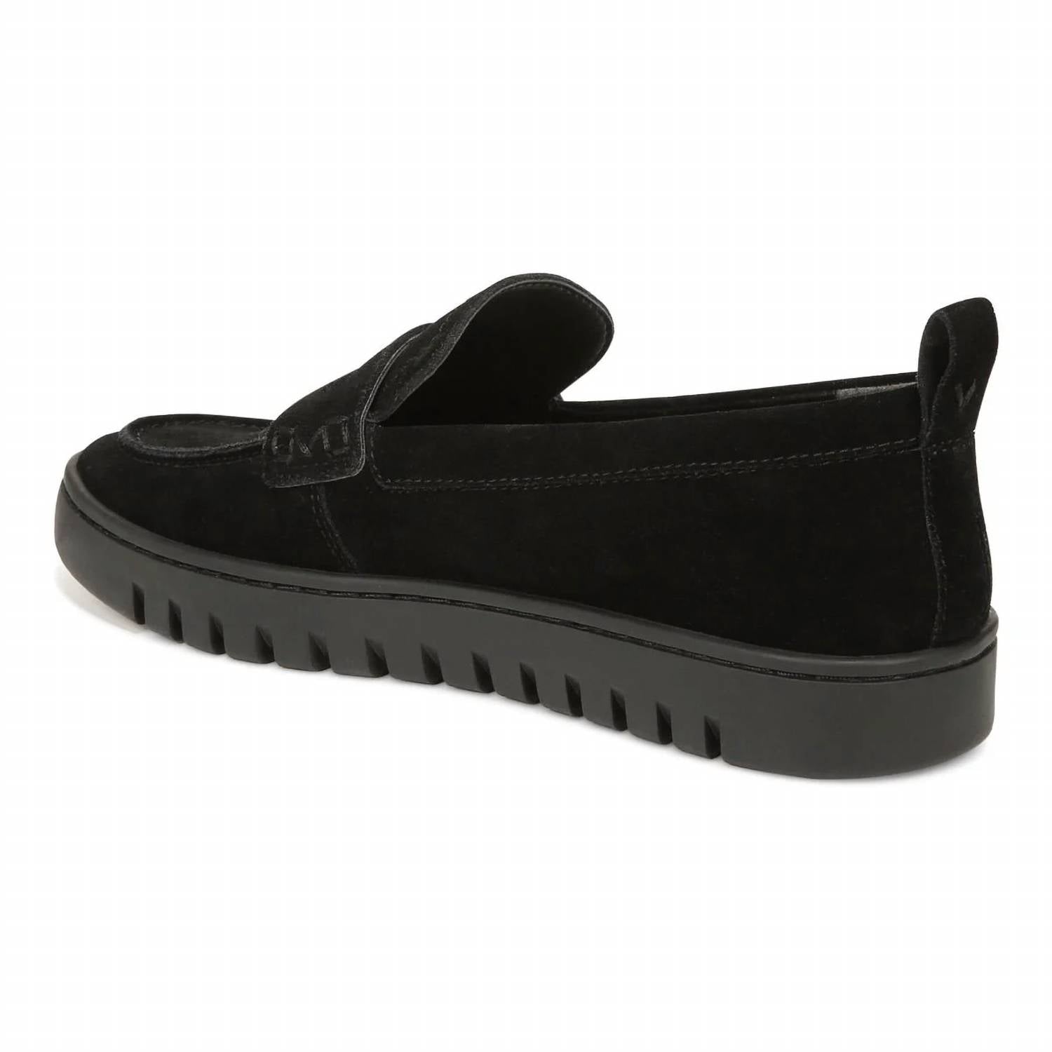 A classic loafer that is both comfortable and polished. Step into effortless elegance with the Uptown Loafer by Vionic, designed for the modern adventurer. This women's loafer features a sophisticated black suede construction, complemented by a flat heel measuring 1.12 inches for all-day comfort. With a smart, deconstructed design, it offers convenience by being easily packable and collapsible. Ideal for exploring, its lightweight and flexible sole provides ultimate ease of movement.
