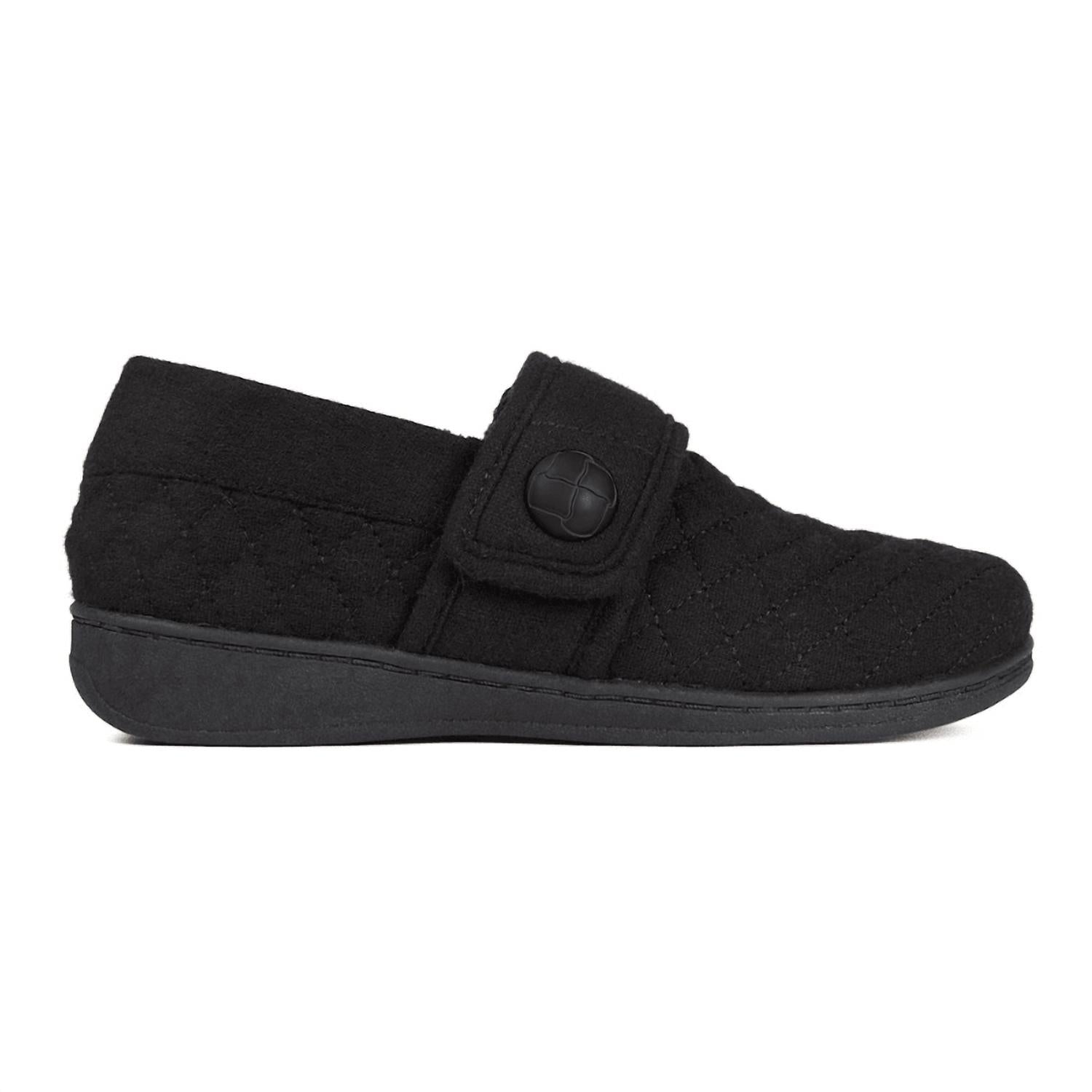 Slip into these, we promise you won't regret it. Offers hook-and-loop closure with an elegant flannel upper and warm terry lining. Textile upper. Textile covered EVA footbed. Rubber outsole. 1.30 inch heel.