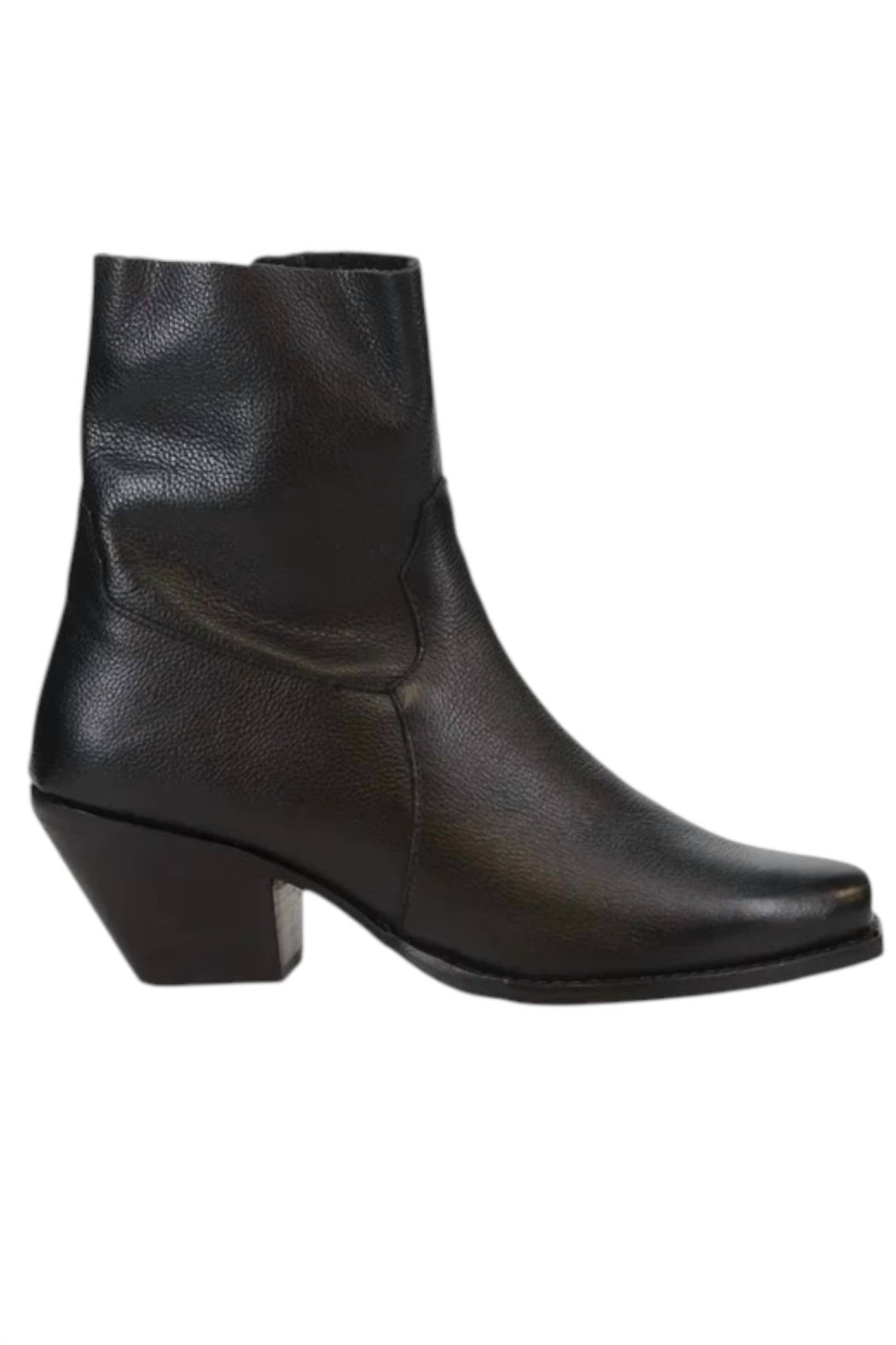 Step out in style with the Women's Lariat Unlined Leather Bootie by VOLATILE, a sophisticated take on the classic western ankle bootie. Crafted with a soft leather upper, it features a squared toe and a comfortable 2.25" block heel, perfect for any fall engagement. The unlined shaft is completed with a convenient nylon inside zipper, ensuring easy wear and a sleek silhouette. Designed with a padded insole and a durable rubber outsole, these booties promise unmatched comfort and versatility in chic black.