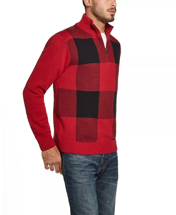 Weatherproof Vintage Men's Quarter-Zip Buffalo Plaid Sweater Red Size Large