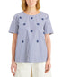 Floral appliques float across sleek stripes| bringing fresh fun to this Weekend Max Mara top| A solid-color back keeps the look current