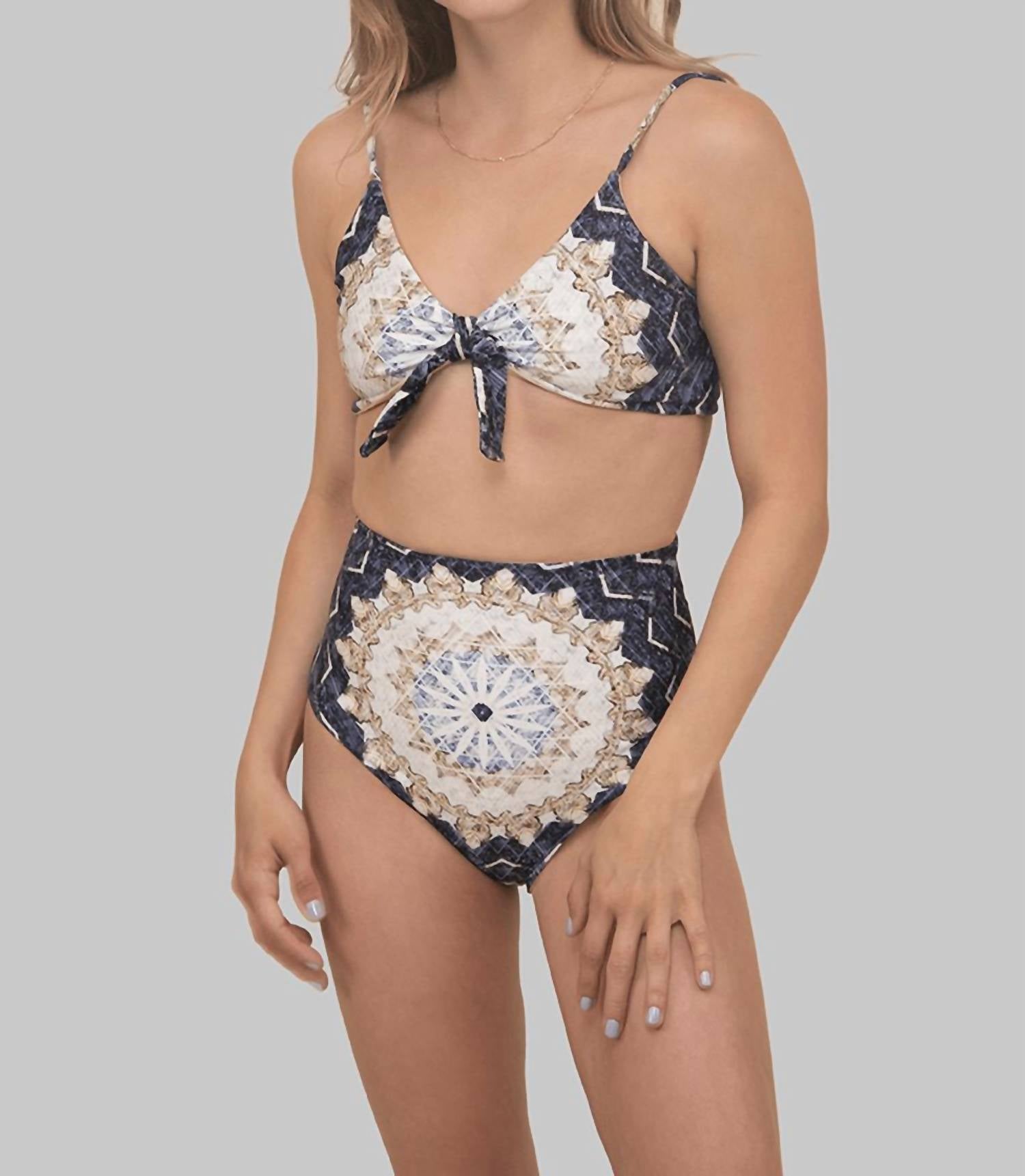 Ideal for relaxed poolside moments, this adorable swimsuit effortlessly transitions into the perfect sunset dinner outfit when paired with a flowing skirt. Introducing the Reverie Reversible High-Waisted Bikini Bottom by WOLVEN, a versatile piece that effortlessly combines style and sustainability. This cheeky swim bottom features a beautiful flower mandala pattern inspired by Bali's flora, with the option to reverse it to a sophisticated dull gold. Crafted from 84% recycled post-consumer plastic and 16% spandex, this high-waisted bottom offers a flattering fit for beach days and festival dance floors alike. Care instructions: machine wash and line dry.