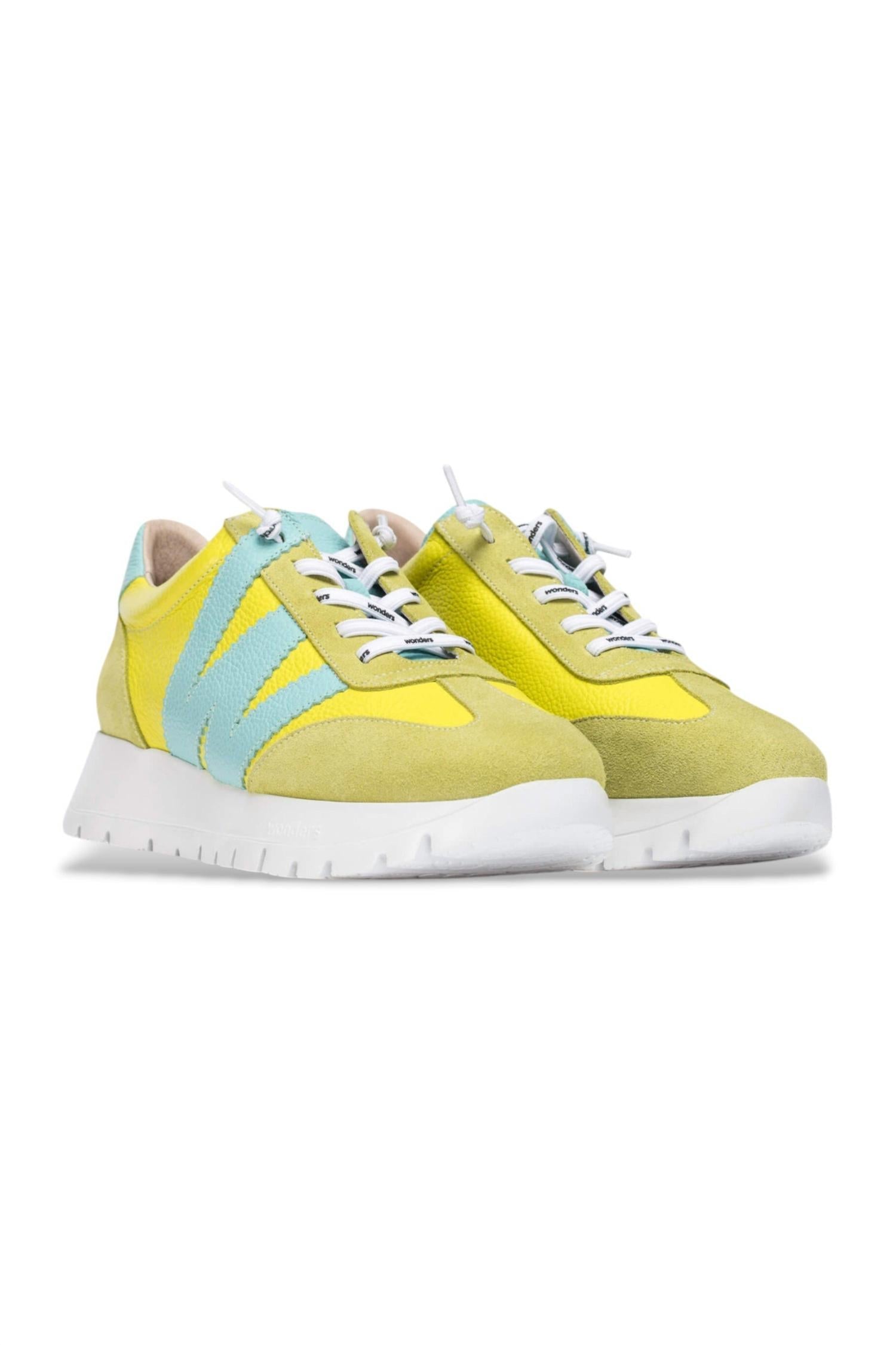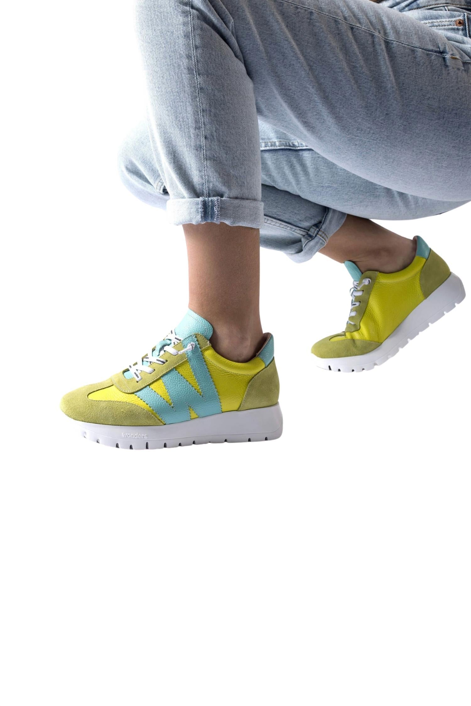 Get your daily steps in with these adorable sneakers. Introducing the Racer Sneakers by Wonders, a stylish choice for the modern woman. These sneakers in CYBER/WILD SEAWEED feature a round toe and wedge heel, ideal for vacationing in spring's streetwear trend. With elastic logo-printed laces and WondersFly™ technology sole by XL EXTRALIGHT®, enjoy an exceptional lightweight, comfortable fit. The removable MemoryGel insole adapts to ensure every step is cushioned and supported.