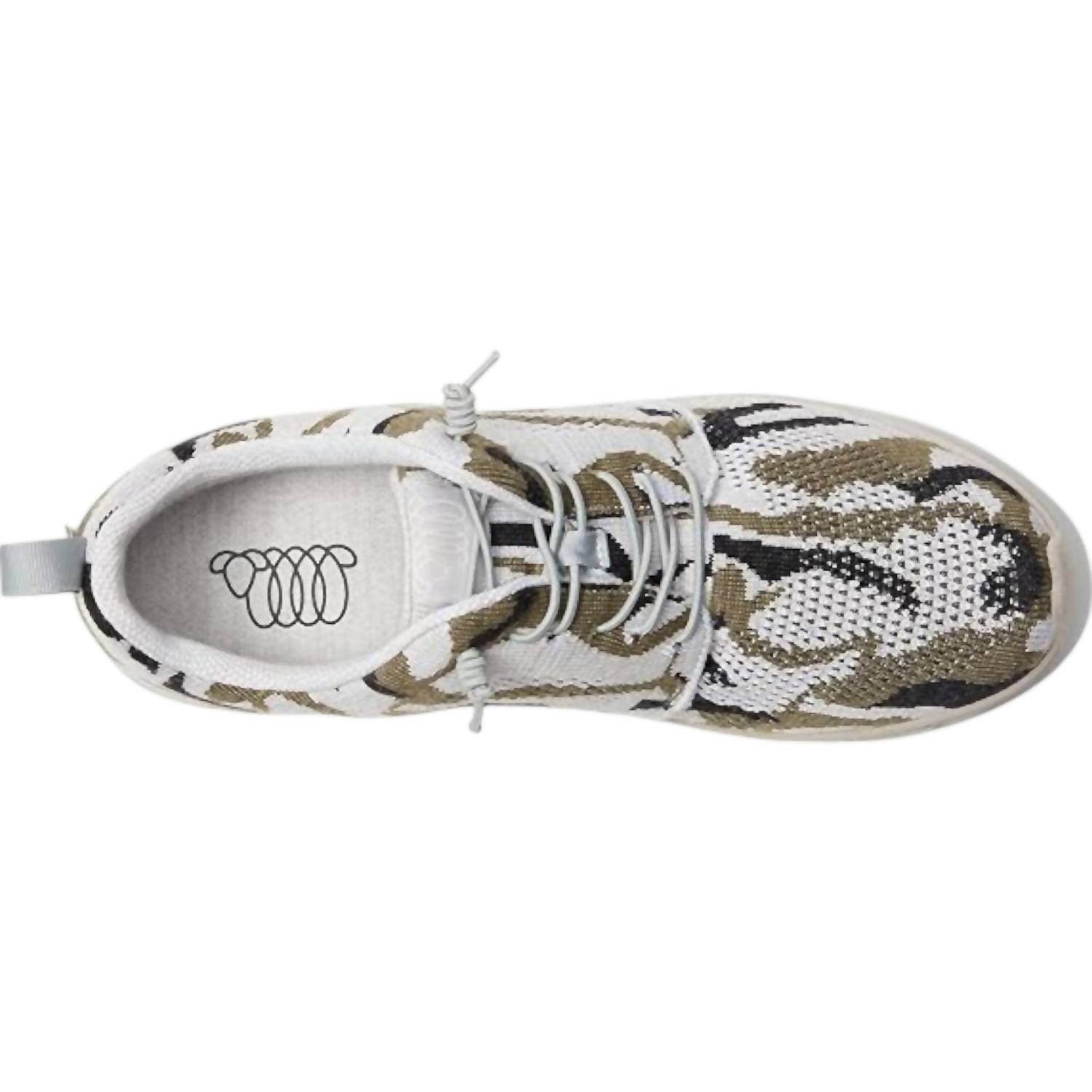 Stylish, comfortable and supportive. These athletic sneakers check all of the boxes. Embrace breathable comfort in a stylish Sand Camo color. Crafted with a digitally knitted Australian Merino wool upper. Feature a wool lining and insole, ensuring durability and comfort. Sole material is rubber, and the shoes are designed with a round toe and an elasticized lace-up closure. Ideal for active wear. resist water and odor.