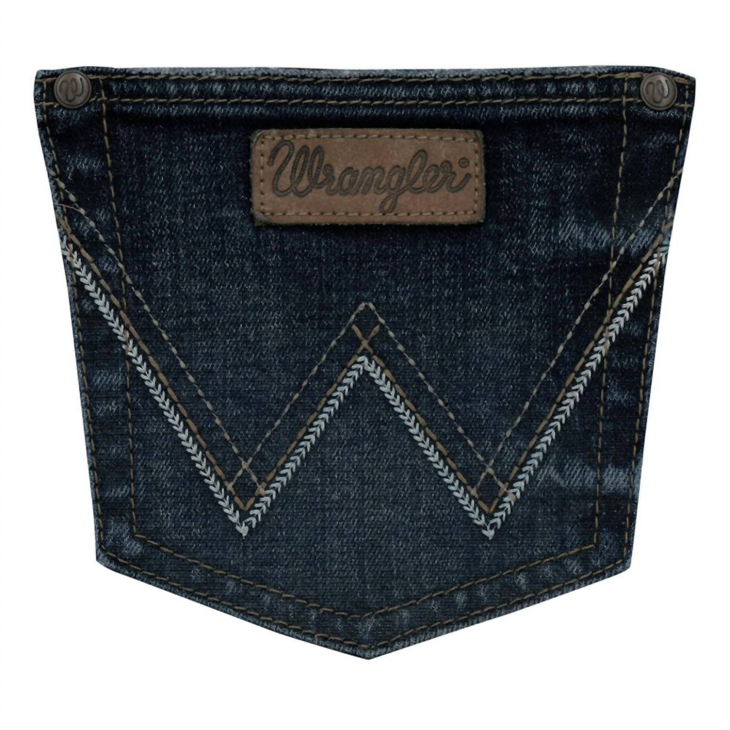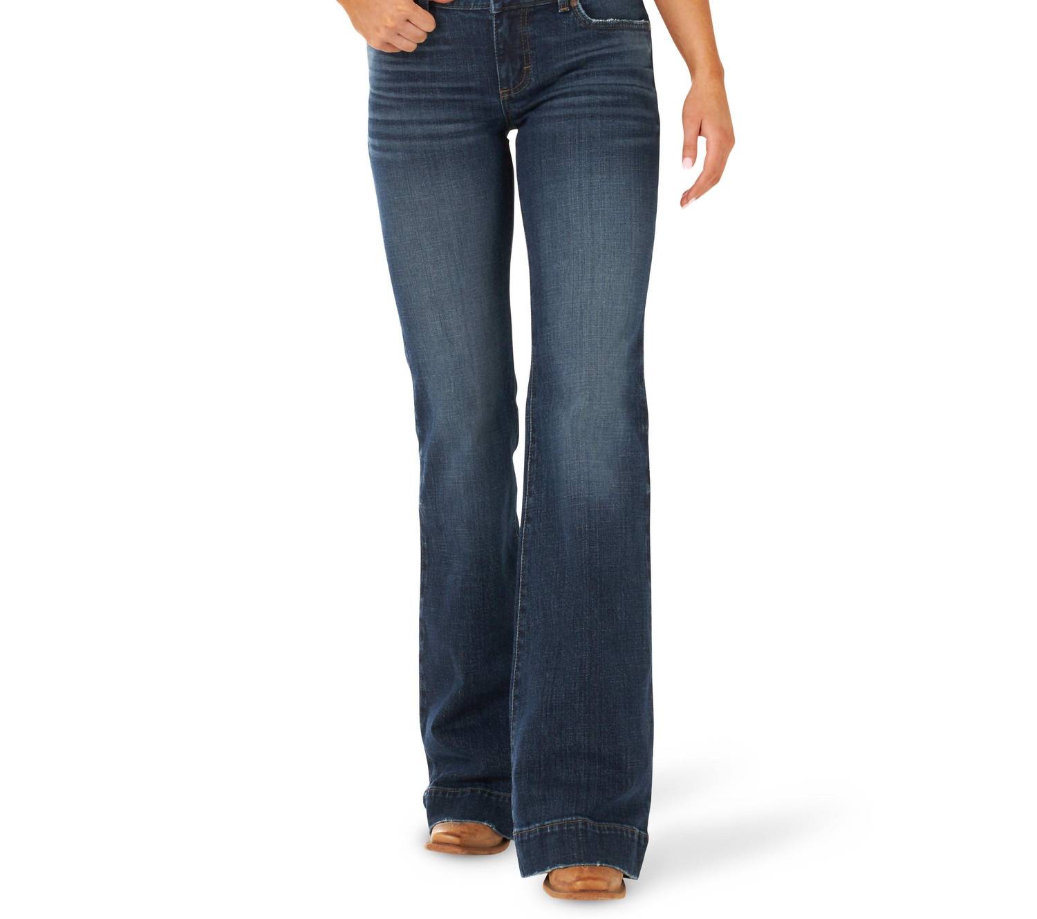 Wrangler Women's Retro Mae Trouser Jean Mid Rise - Shelby. Front: zip-fly with button closure. Back pocket: basic. Two back pockets with no closure. 99% cotton, 1% spandex.