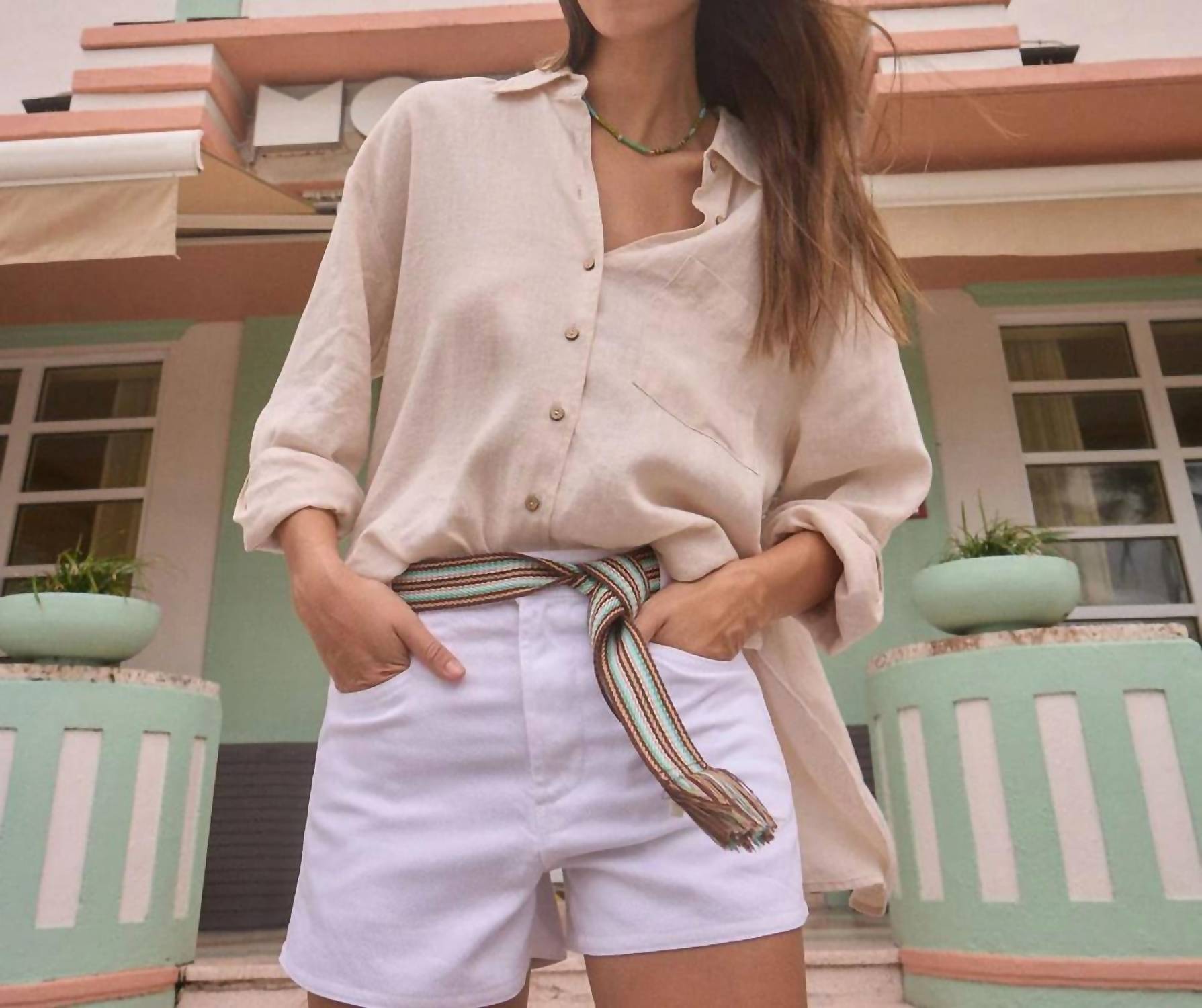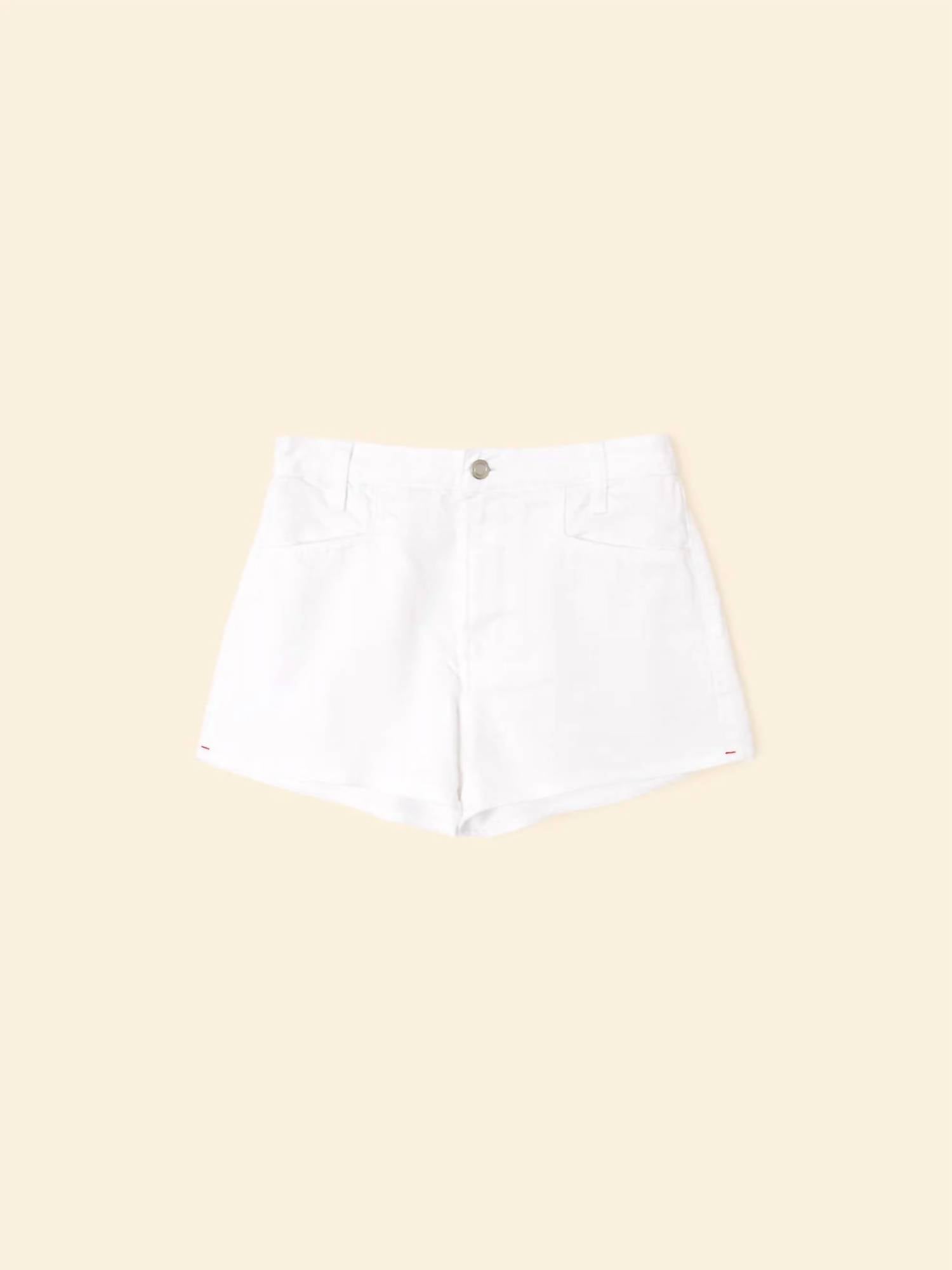 Introducing the Renner Short by XIRENA, crafted from ultra-soft, drapey Lyocell denim for a lightweight feel and easy movement. This chic high-waist short in solid white features an inseam of 4 inches and includes practical five-pocket styling along with an elasticized back waistband for a flattering fit. Originating from Los Angeles, the button closure ensures ease and style, while care instructions recommend machine washing on a gentle cycle and low tumble dry. A perfect choice for warm-weather days, reflecting a minimalist trend for spring vacations and Easter celebrations.