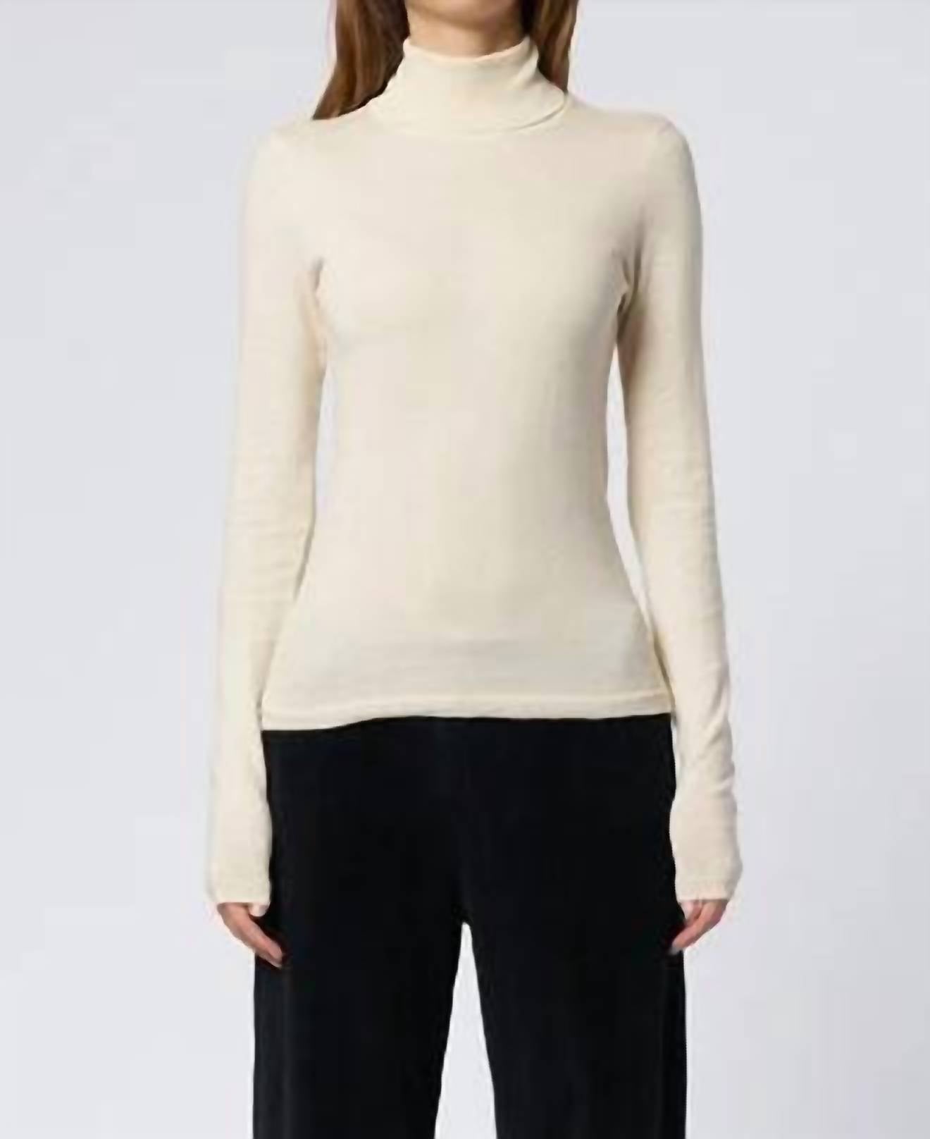 Fit to perfection and effortlessly chic. Introducing the Tommy Sweater by XIRENA, an elegant choice in cream designed for versatile layering. This long sleeve piece features a comfortable turtleneck and a refined solid pattern. Made in a fine knit cotton blend, it combines 95% cotton and 5% cashmere for a luxurious feel. Closure: Pull on. Care: Machine wash and lay flat to dry.