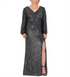 XSCAPE Women's Long Sleeve V Neck Full Length Evening Sheath Dress Black Size 14W