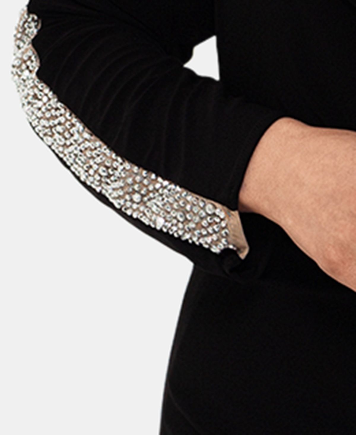 Xscape Women's Long Sleeve V Neck Full-Length Sheath Evening Dress Black Size 14W