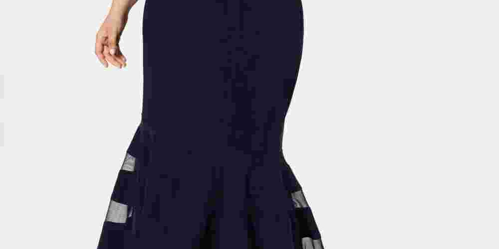 Xscape Women's Plus Illusion Panel Gown Navy Size 14W