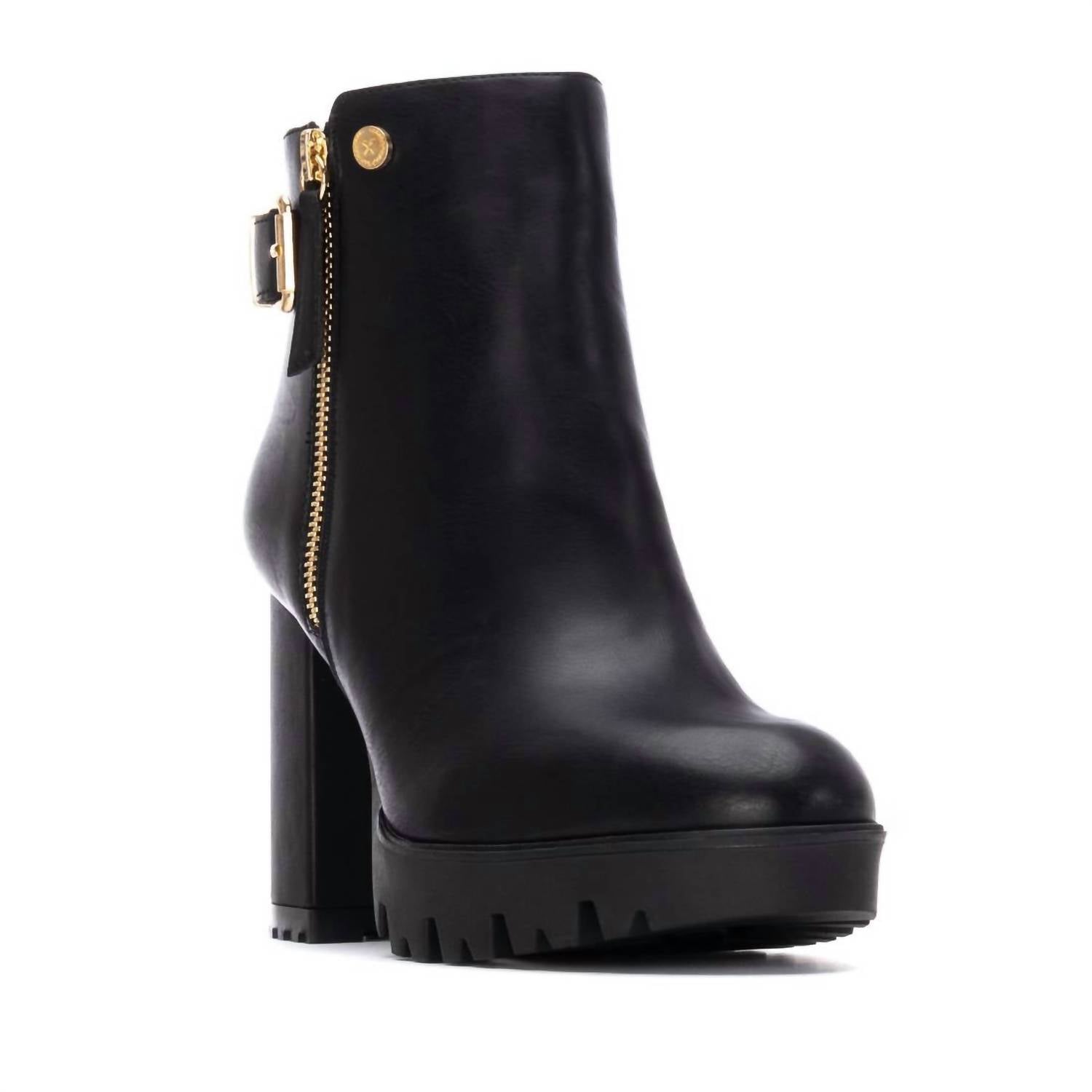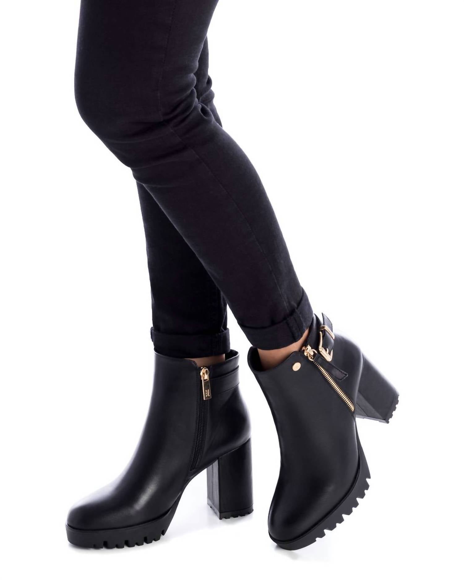 Say hello to the perfect, most versatile boot. The ankle height makes this style easily transition from day to night. Wear them with your favorite skinny jeans and tee for a more laid back look, or pair them with your favorite mini dress and jacket for a night out on the town. Introducing the Women's 140583 Ankle Booties by Xti, designed to make a statement in classic black. Crafted from high-quality leather, these booties embody the perfect combination of style and comfort. Featuring a medium shoe width and a chic block heel, they're ideal for summer, Thanksgiving, and evening events. With a round toe and crafted with attention to detail, step out in confidence and enjoy the luxurious comfort of these stylish booties.