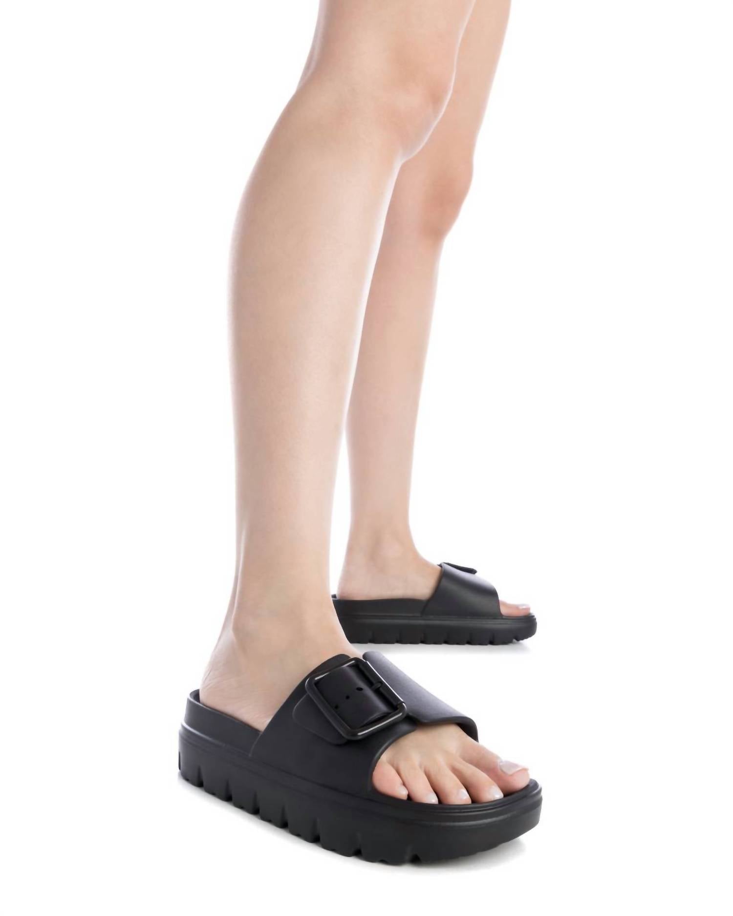 Flowy dresses, cropped pants, and even jumpsuits... this sandal works with them all! Introducing the Women's Sandals Refresh by Xti, a perfect blend of style and comfort for any occasion. These black sandals are designed with a round toe and feature a chic chunky heel, yet remain flat at 1" and under for ease of wear. Crafted for women, they seamlessly complement any outfit, whether you're at work or out with friends.