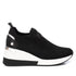 Introducing the Women's Wedge Comfort Sneakers by Xti, a perfect fusion of fashion and comfort in sleek hue. These sneakers feature a mid-height 2.36-inch wedge heel with a two-tone design, and a breathable stretch polyester upper. The slip-on style ensures ease of wear, complemented by a lightweight anti-slip rubber outsole. Certified vegan by PETA, they boast a Comfortech insole for all-day support, making them ideal for your daily adventures.