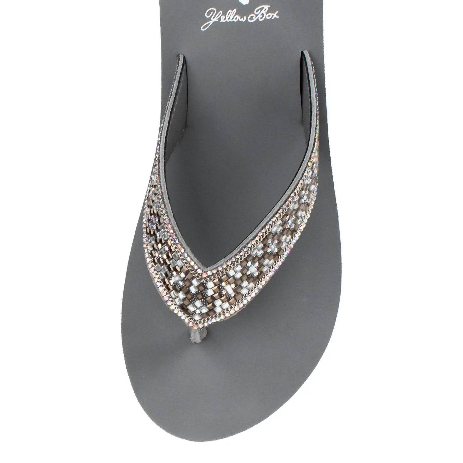 Timeless wedges that will be relevant season after season. These wedge sandals feature a glittering mosaic of faceted square jewels on the strap, with a round toe design. The heel height is 2.5 inches, and the platform height is 0.75 inches. Made of leather, they have a Yellow Box EVA insole for comfort and a rubber outsole for durability.