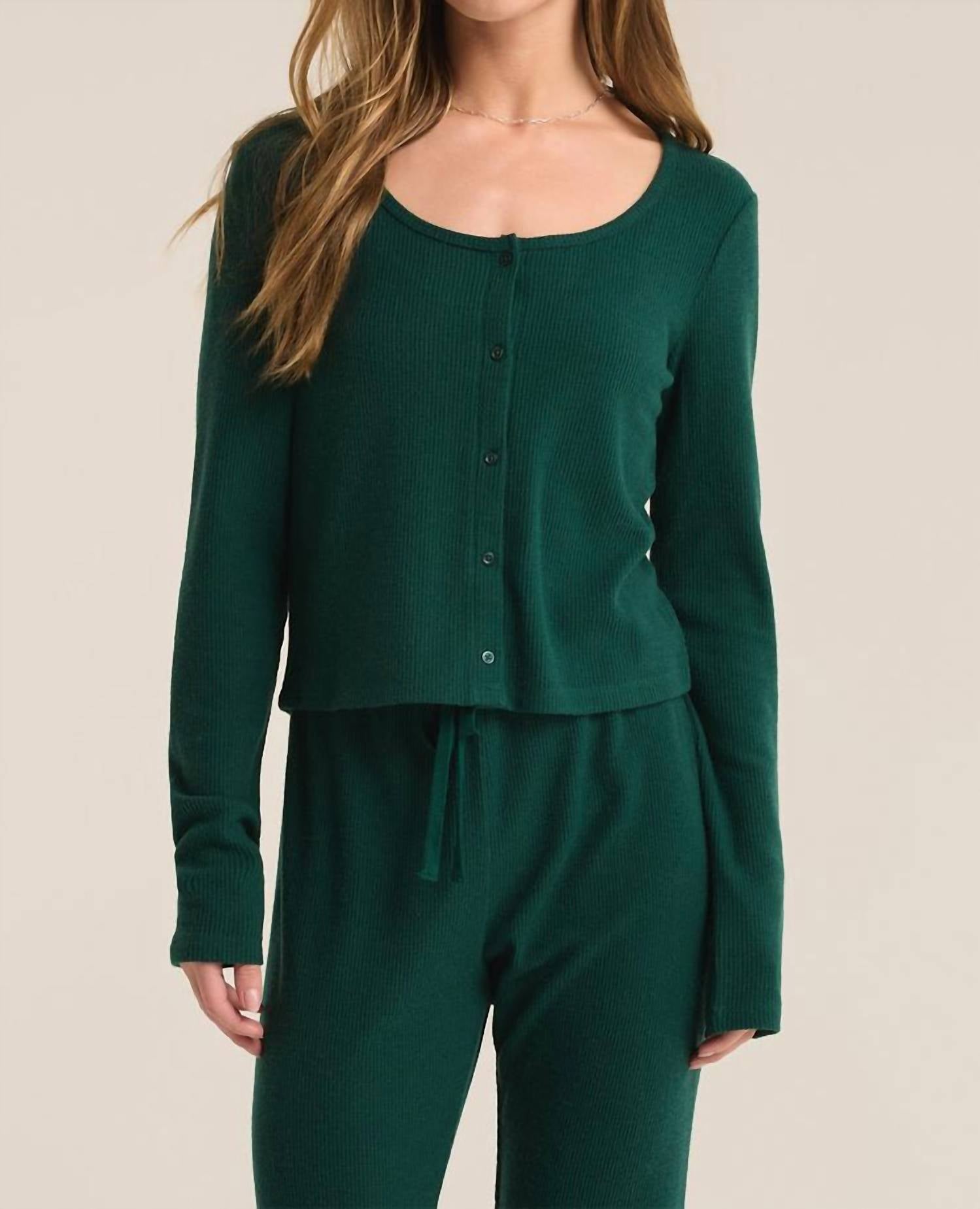 Introducing the Abigail Top by Z Supply, a relaxed fit Henley crafted from soft brushed mini thermal fabric in a rich Noble Fir. With long sleeves and a button front closure, this top combines comfort and versatility for cozy, casual days. Composition includes 64% Polyester, 33% Rayon, and 3% Spandex. Care instructions are simple: Machine wash cold on gentle cycle and tumble dry low.