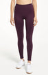 Deep plum seamless leggings. Soft stretchy fabric with ribbed pattern detail. Compression stretch fabric. Comfortable wide high rise waist band. Fit maintained during exercise and wear. 24" inseam. Our standard young contemporary sizing. X-Small/Small fits sizes 2-5, medium/large fits sizes 6-9.
