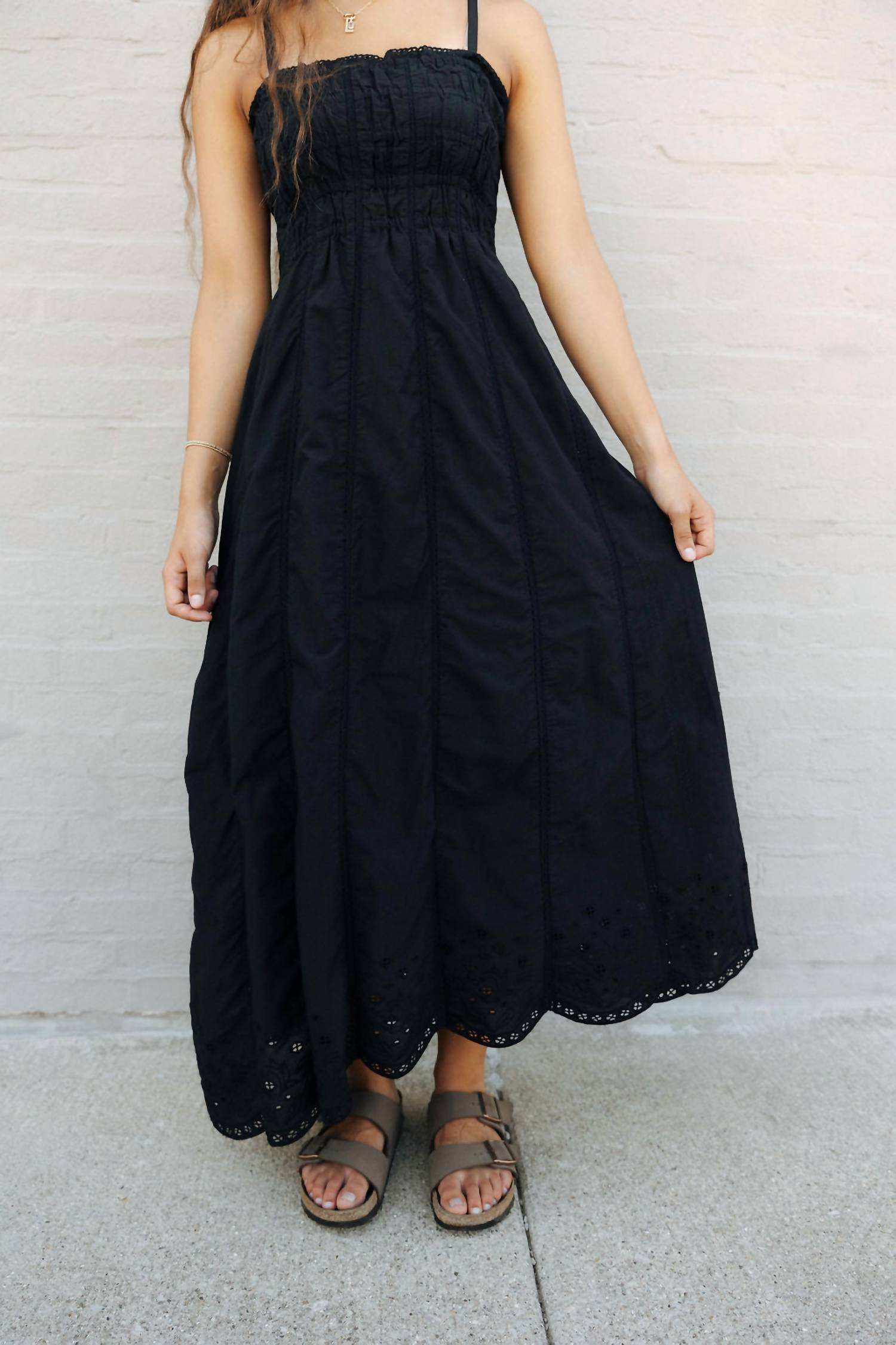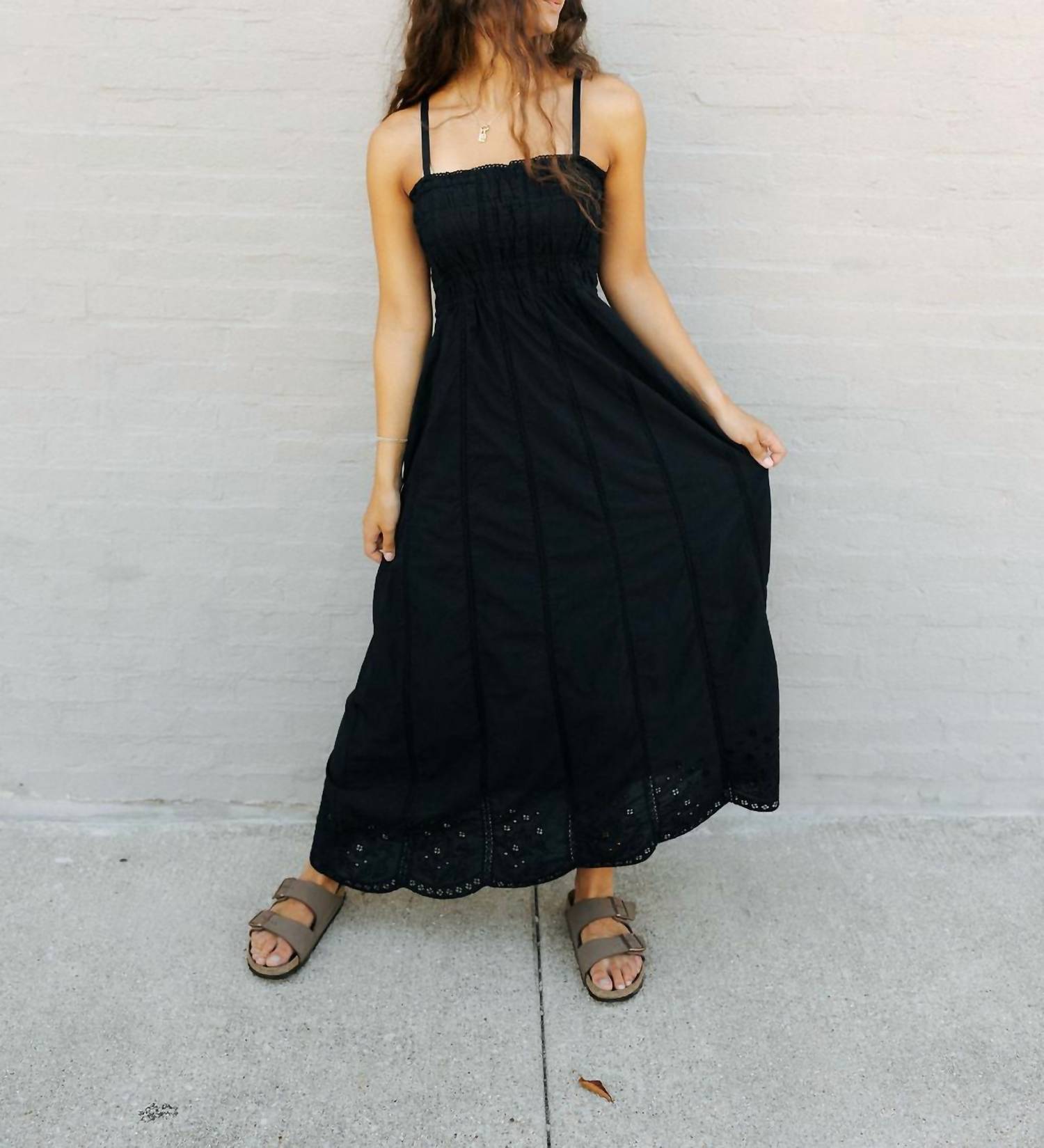 Discover the Dani Embroidered Midi Dress by Z Supply, an effortlessly elegant staple with a boho twist. This sleeveless black dress is crafted from 100% cotton, with a relaxed fit that cinches at the waist, creating an easy, one-and-done outfit perfect for any occasion. The garment measures 48" from shoulder, with a 35" bust and a waist that stretches up to 30" for a feminine silhouette. Care is a breeze with machine wash cold and gentle cycle instructions; hang to dry or tumble dry low for optimal results.