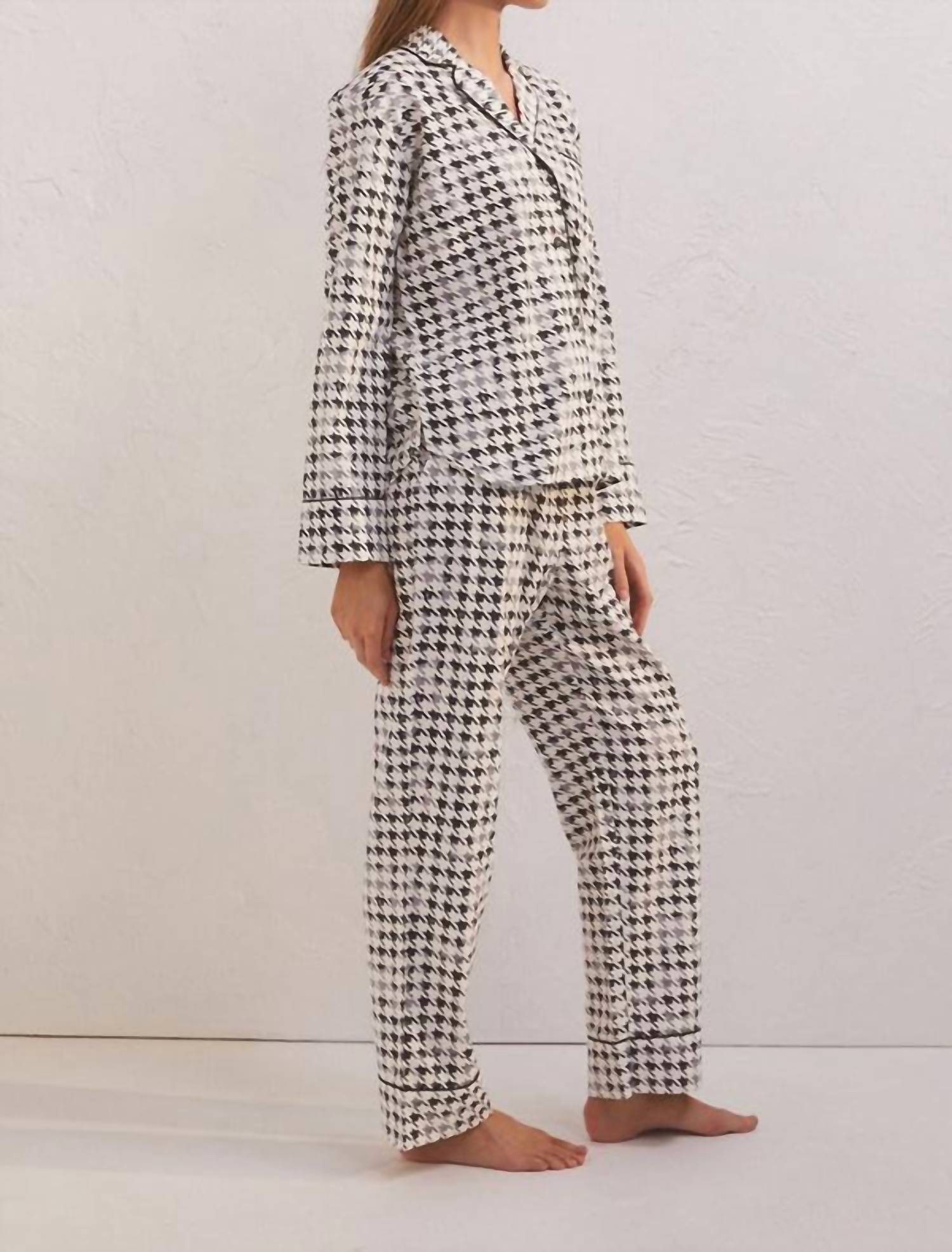 Works well with naps, zoom calls and binging your favorite series. Introducing the Dreamer Houndstooth Pajama Set by Z Supply, a chic sleepwear choice for women. This set showcases a classic houndstooth pattern in a vanilla ice hue, adding a touch of elegance to your bedtime routine. Crafted from soft cotton with long sleeves and a collar neckline, it promises ultimate comfort and style. Whether for lounging or sleeping, this pajama set is a must-have for any wardrobe.