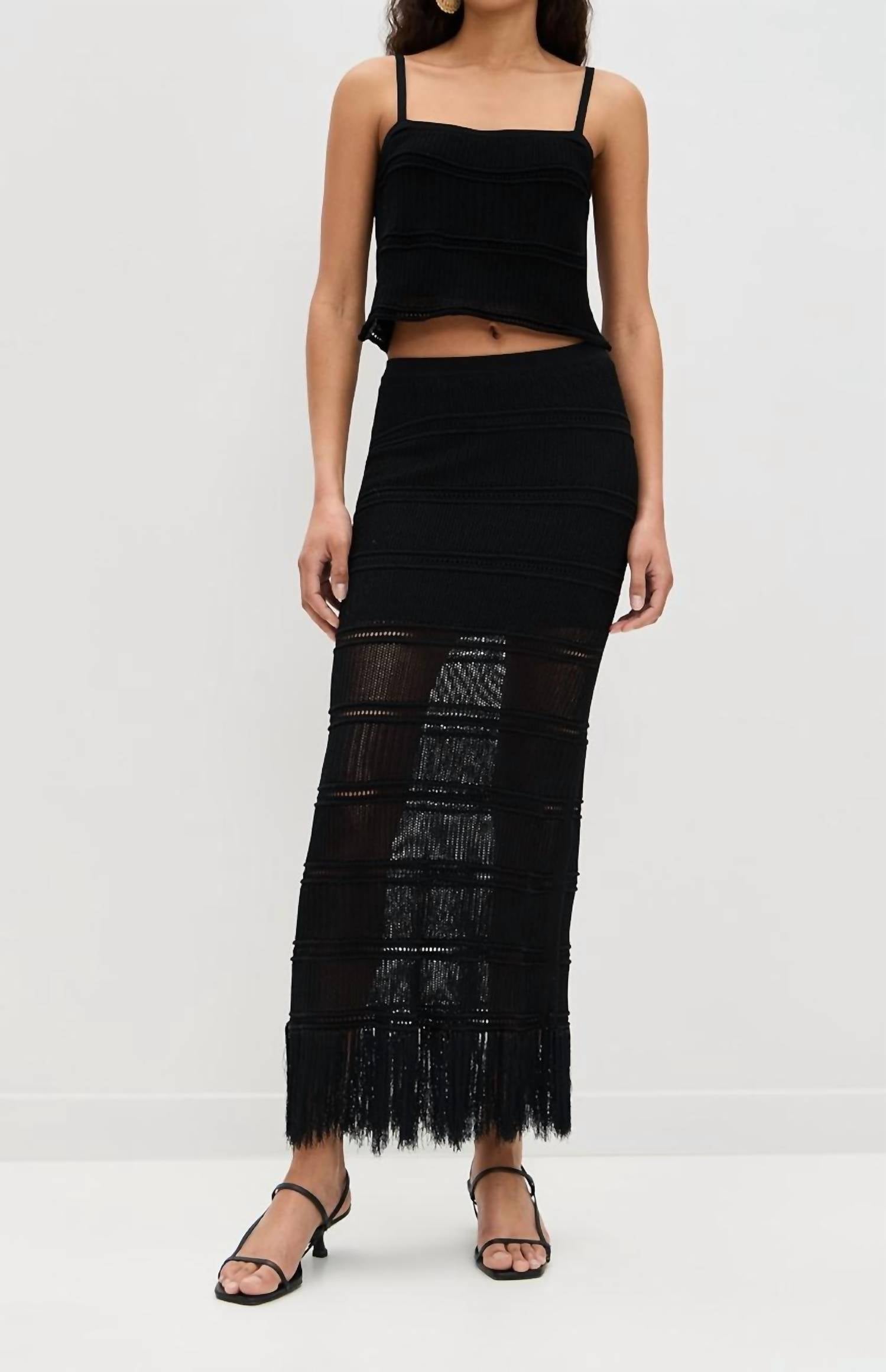 Show off just the right amount of skin in this beautifuly designed midi length skirt. Elevate your holiday wardrobe with the Flynn Black Midi Skirt by Z Supply, a boho-chic piece that's perfect for any festive occasion. This 36.25-inch midi skirt is crafted from a lightweight super-stretch crochet, featuring a fringed hem and a comfortable covered elastic waistband. The skirt's shell is composed of 89% viscose and 11% nylon, while the partial lining is made from 95% viscose and 5% elastane, ensuring both comfort and style. Originating from China, this piece requires hand washing or dry cleaning for maintenance.
