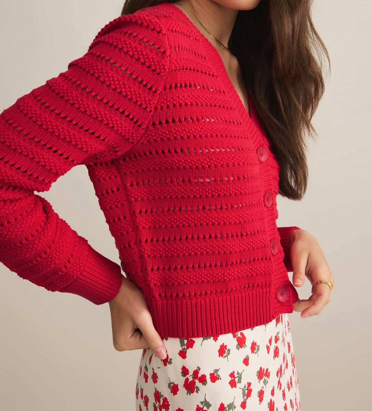 A classic fit that works just as good buttoned as it does left open. Introducing the Romance Cardigan by Z Supply, a perfect addition for your spring wardrobe in a charming red hue. This long sleeve cardigan features a V-neckline and a textured pattern, combining minimalist style with comfort. Crafted from a cotton blend of 96% Cotton and 4% Nylon, it offers a regular fit ideal for holiday parties. Closure: Button closure. Care: Hand wash.