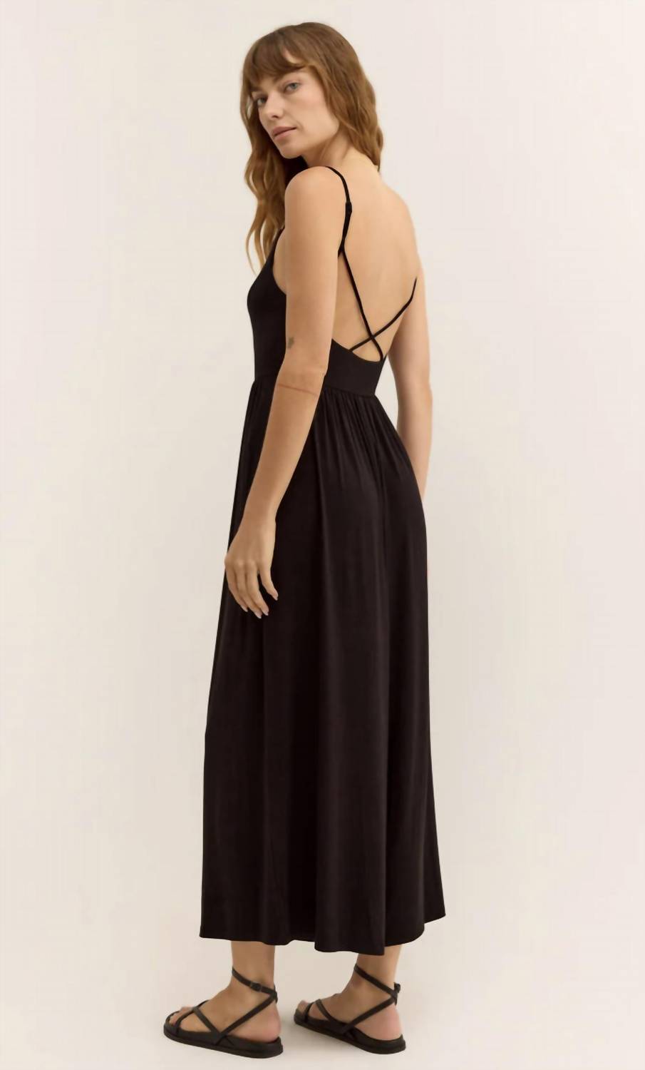 It doesn't take much for this one piece to look effortlessly cool. Add some statement jewelry to dress it up, or throw on some sneakers for a more casual vibe. The Z Supply Roz Jumpsuit in Black is a chic addition to your wardrobe, perfect for a minimalist vacation style. Featuring thin adjustable straps, a v-neckline, an elastic waistband, and a relaxed wide-leg fit, this jumpsuit prioritizes comfort and elegance. Made from 95% Rayon and 5% Spandex, it boasts a solid pattern and a high-rise style for a flattering silhouette. Pull-on closure and easy care with machine wash cold instructions make it effortless to maintain.