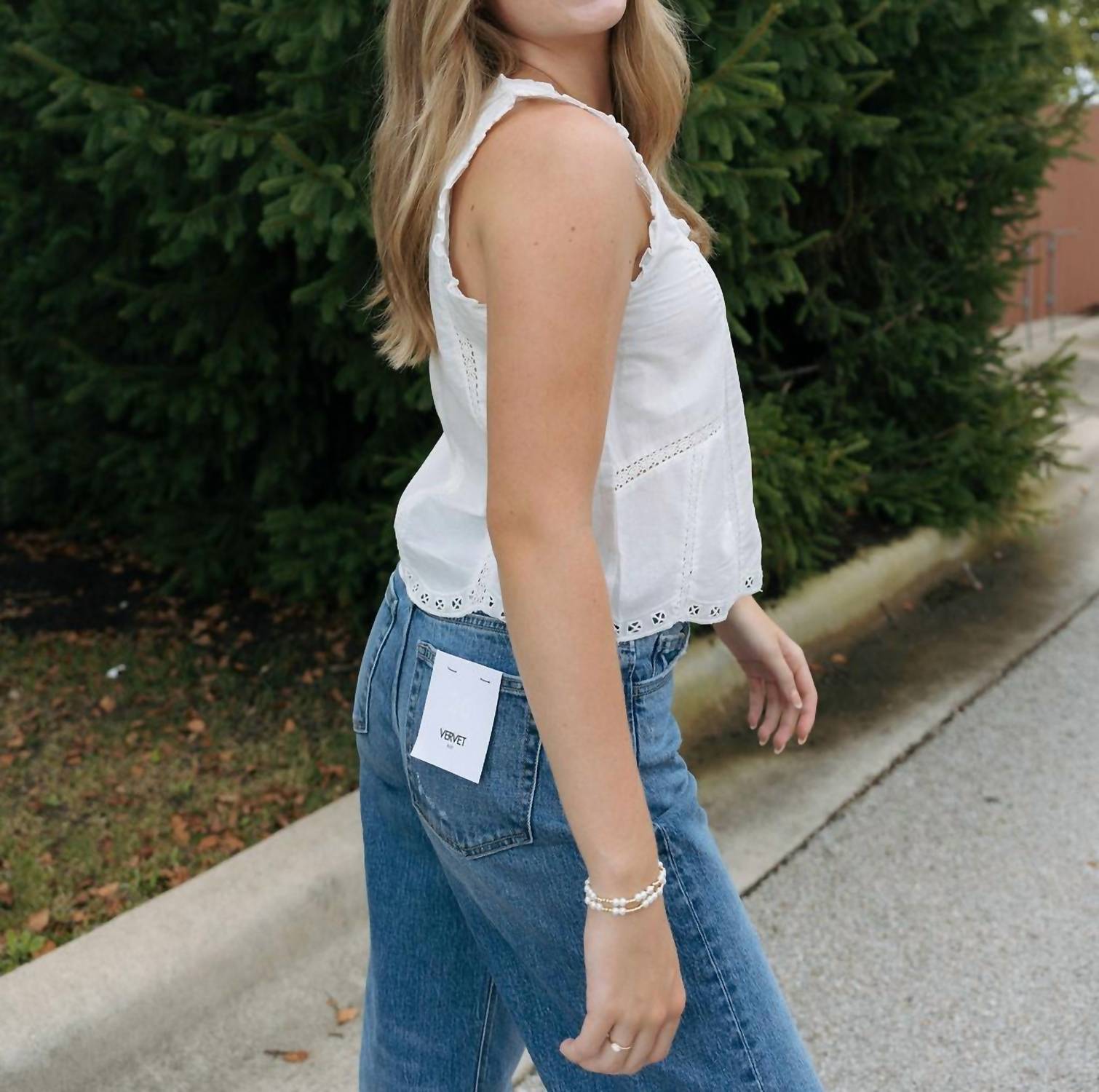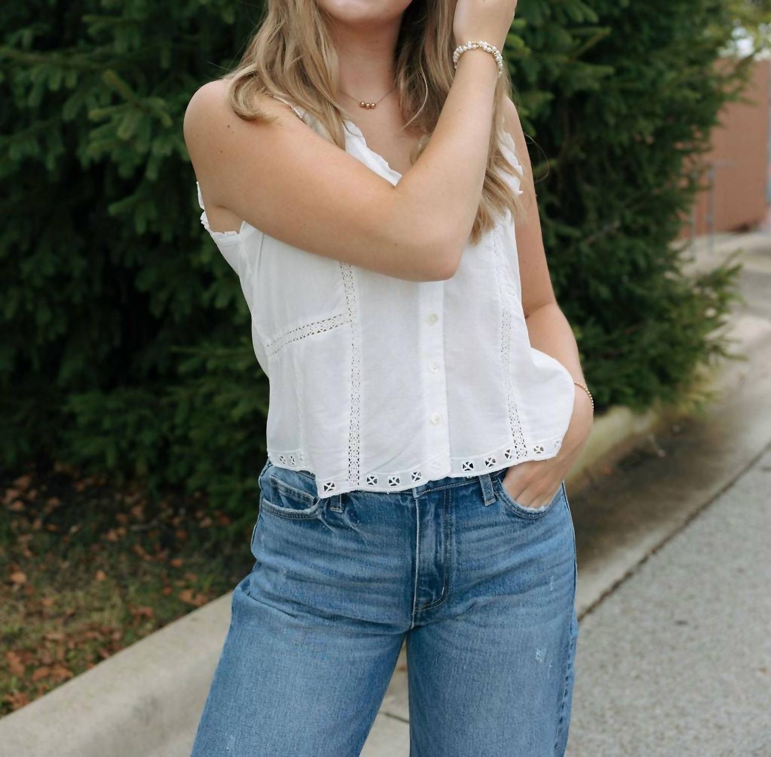 This classic tank top is perfect for layering and cute enough to wear on its own. Introducing the Tomi Embroidered Tank Top by Z Supply, a perfect blend of comfort and style for your wardrobe. This sleeveless design in 100% cotton features a versatile v-neckline and a trendy cropped length. With a pull-on closure and true-to-size fit, this tank is ideal for summer vacations or boho chic looks. Care is simple with machine wash and tumble dry instructions.