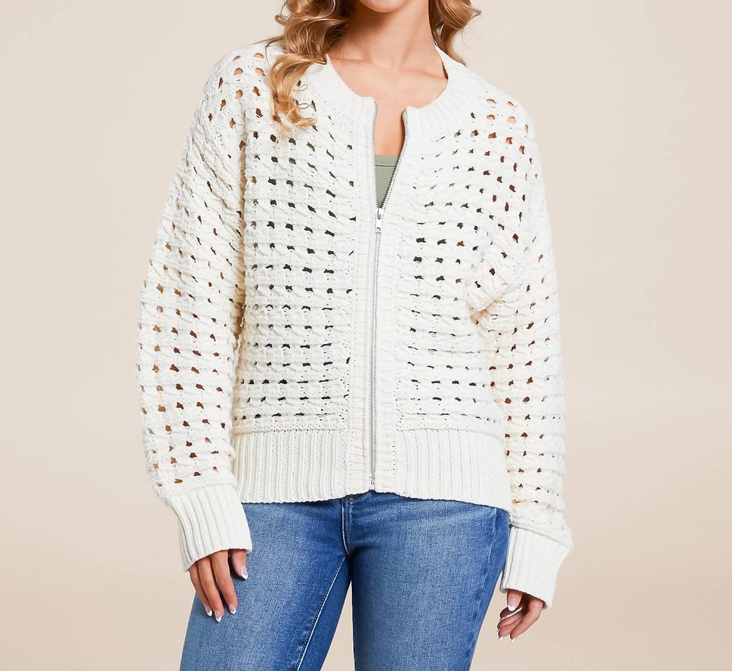 This cardigan will be a sweater-rotation favorite. Meet the Women's Liam Sweater Jacket by Z Supply, a stylish addition to your vacation wardrobe in the refreshing Sea Salt hue. This chic open-front cardigan, perfect for layering, features long sleeves and a cozy textured knit pattern, embodying the boho chic trend. Designed with a crewneck and measuring 19" in body length on a size small, it has a bust measurement of 38" on the same size. Closure: Button closure. Care instructions are not available. 60% Cotton, 40% Acrylic.