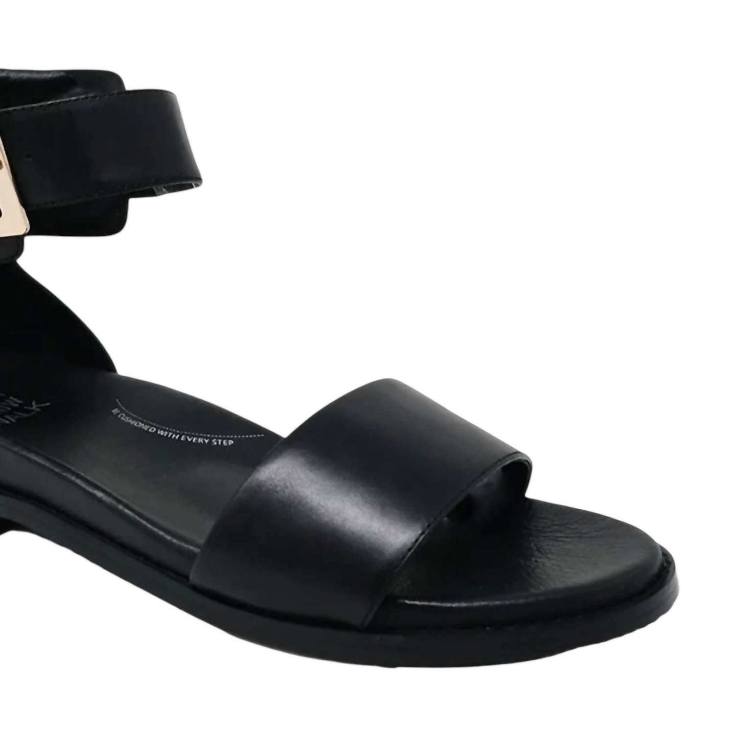 Classicly cute and all-day-wearable. We love this sandal. Elevate your ensemble with the Women's Juzy Sandals by Ziera, a perfect fusion of comfort and sophistication in black leather. These sandals feature leather uppers and an open toe with a flat heel, highlighting their trendy yet quiet luxury appeal. The pillow walk triple foam cushioning, supportive steel shank, and built-in arch support ensure maximum comfort and pressure distribution, while offering forefoot and ankle adjustability. Ideal for spring and versatile enough for engagements or Thanksgiving, these wide-fit sandals cater to women seeking both style and practicality.