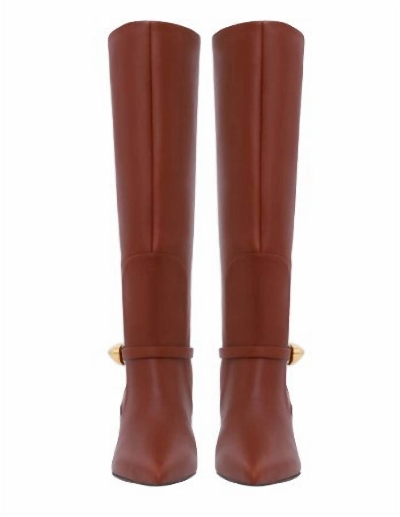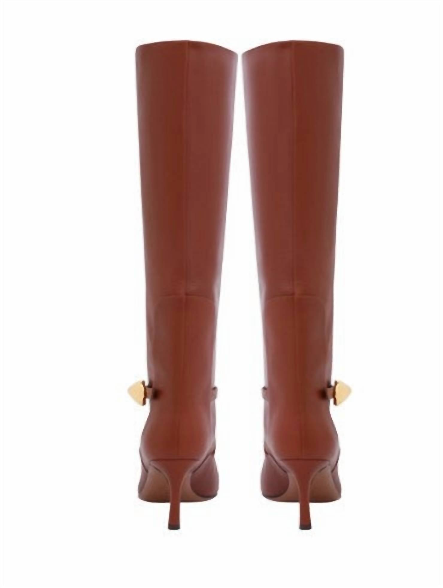 A stylish boot with a comfortable fit and the perfect amount of height. These classic boots are the perfect addition to any outfit and can be worn season after season. Introducing the Harlow Boot by Zimmermann, a sophisticated pair of knee-high heeled boots in a stunning tan shade. These women’s boots are meticulously crafted from premium Italian leather and feature a luxurious gold pebble detail on the ankle strap, with a sleek pointed toe design. The boots boast a stylish 65mm stiletto heel, offering a perfect blend of elegance and height.